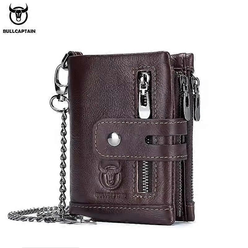 BULLCAPTAIN Men RFID Blocking Genuine Leather Card Holder Zipper Wallet Chain