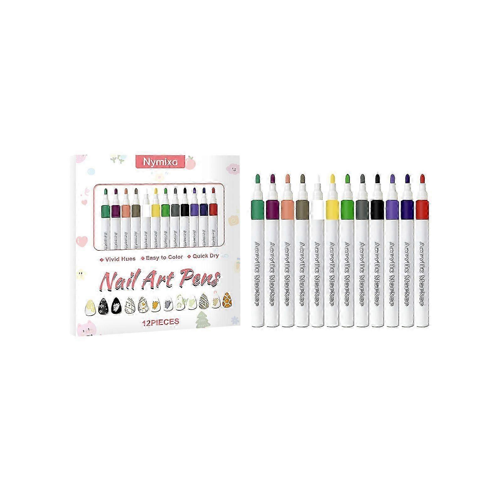 12 Colors Nail Art Pens Set, 3D Acrylic Paint Nail Polish Pens for Drawing &Dotting, Quick-Dry Nail Art Markers with Fine Tip, DIY Nail Art at Home &