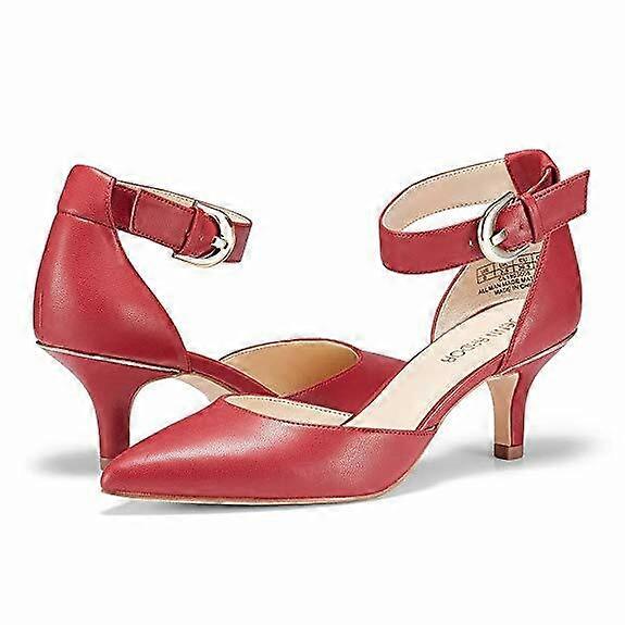 Womens Kitten Heel Pumps RED Shoes Closed Pointed Toe Ankle Strap Dress Stiletto
