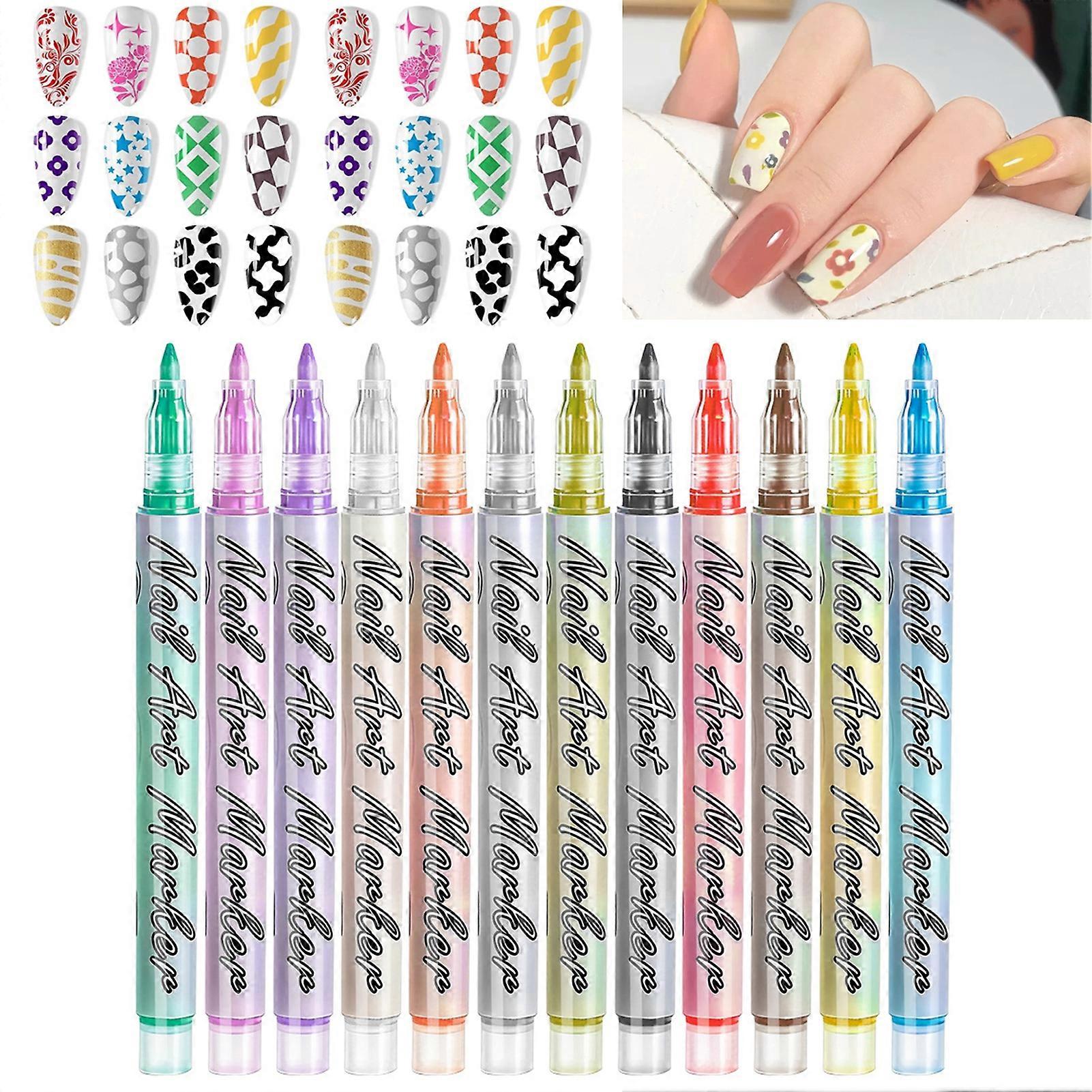 12 Colors Nail Art Pens Set 3D Nail Art Markers Polish Pen Quick Drying Graffiti Dotting Pen Drawing Painting Liner Brush