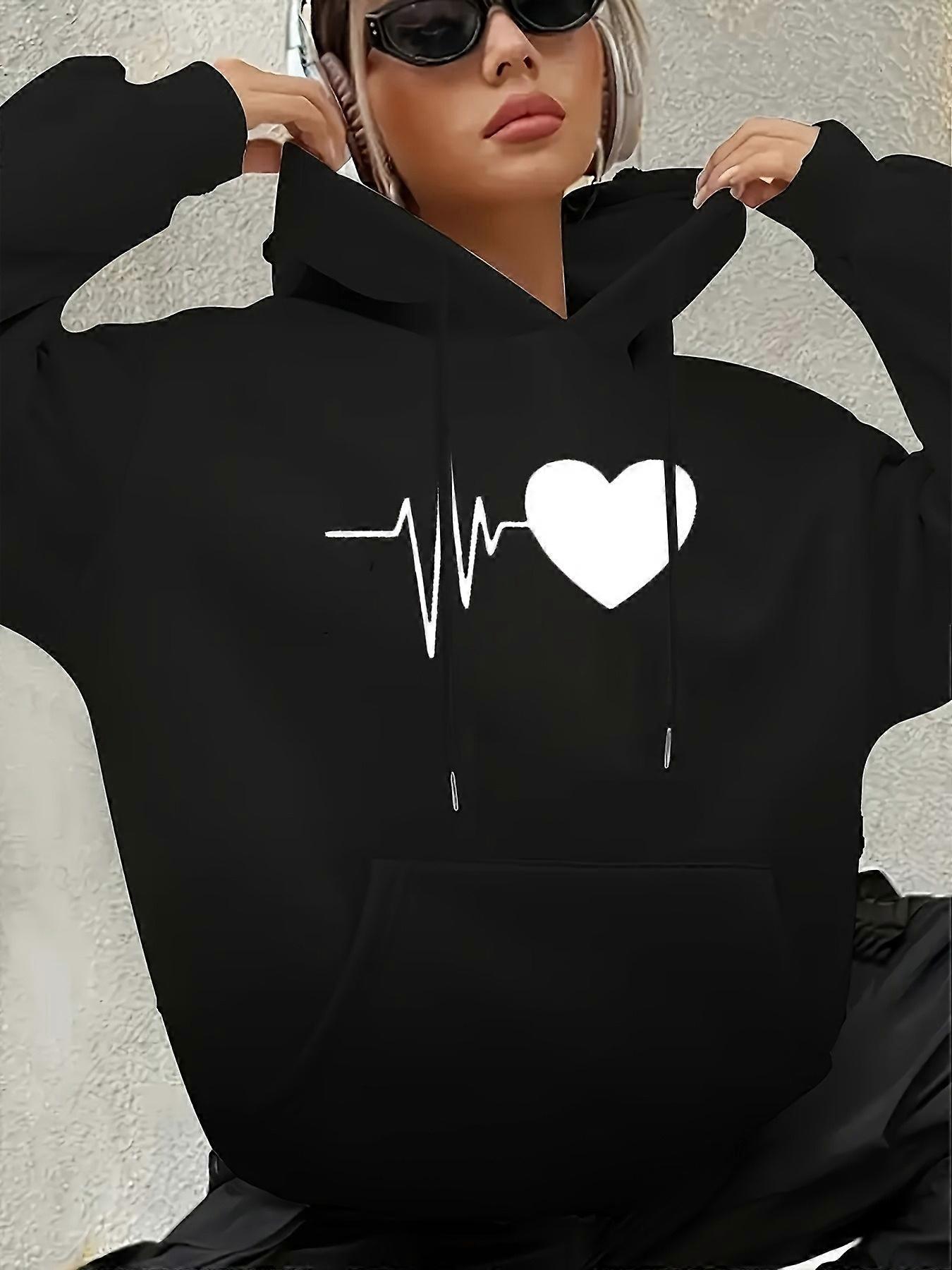 Women's Casual Hooded Sweatshirt Vibrant Red Heart & Stethoscope Graphic Print Fashion Casual HipHop Sweatshirt Harajuku Unisex