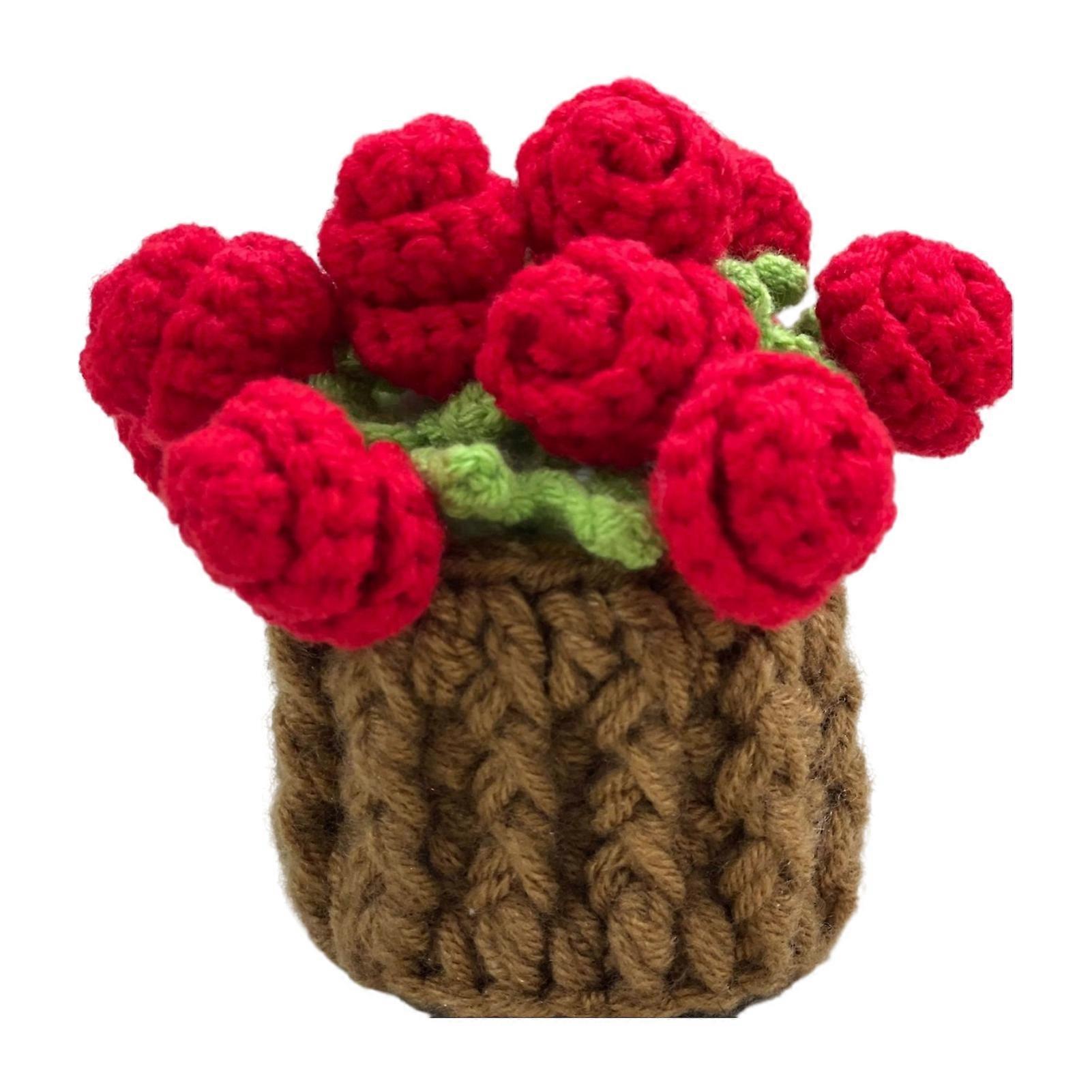 Made from high-quality yarns, these artificial flowers are soft, durable, and vibrant, resisting fading over time. They require no watering or maintenance, providing lasting beauty without hassle. Perfect as a thoughtful gift, this handcrafted piece brightens any room or vehicle with timeless charm.