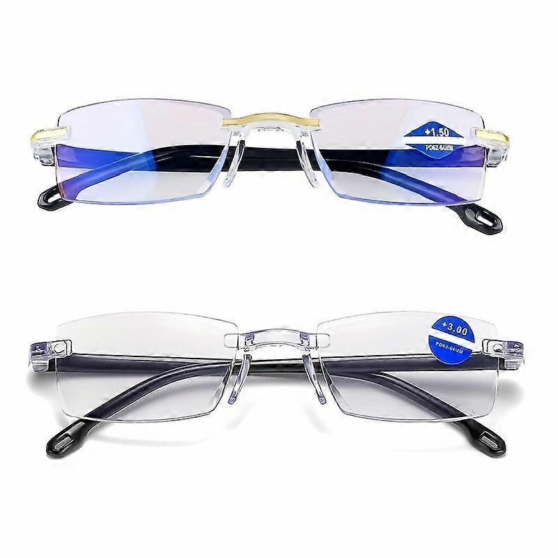 2 Pcs Anti Blue Light Reading Glasses+1.00 To+4.00 Anti Eye Fatigue Computer Glasses Suitable for Both Women and Men
