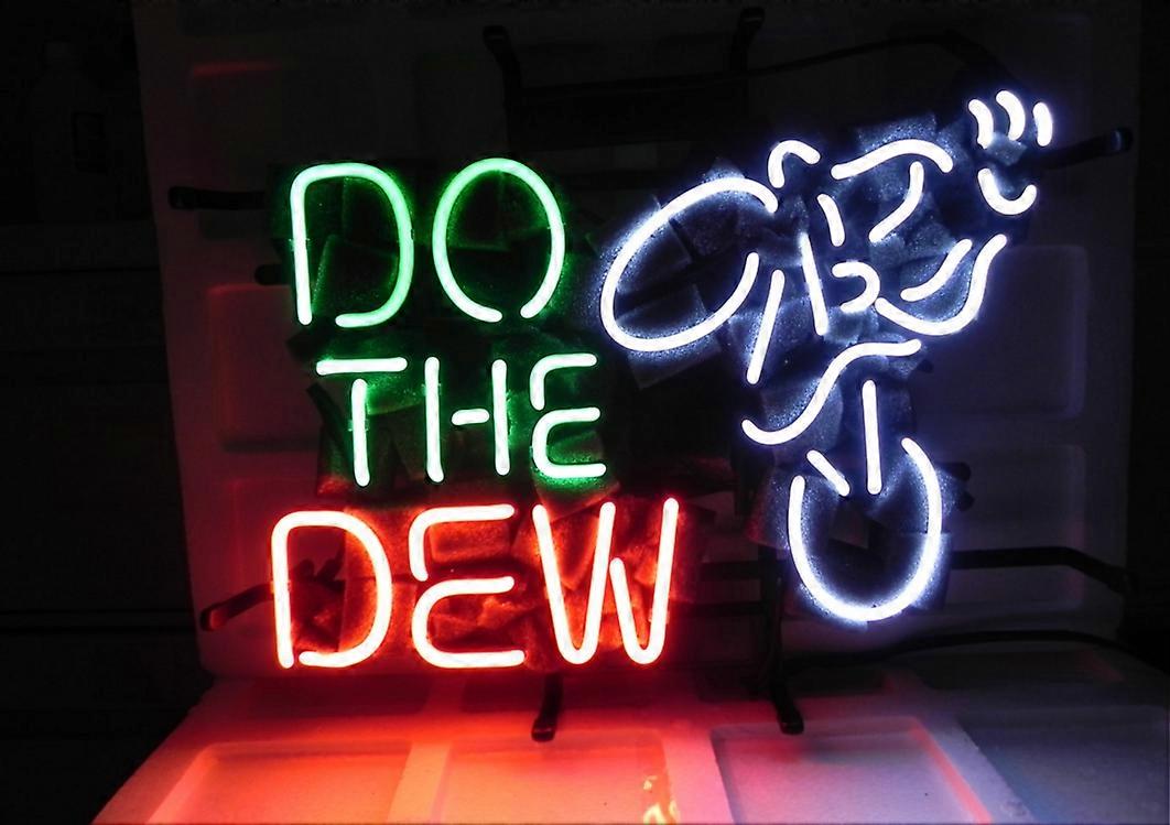 Do The Dew Real Glass Neon Sign - Handmade Retro Drink Culture Wall Art for Gamer Room & Man Cave - 17"x14"