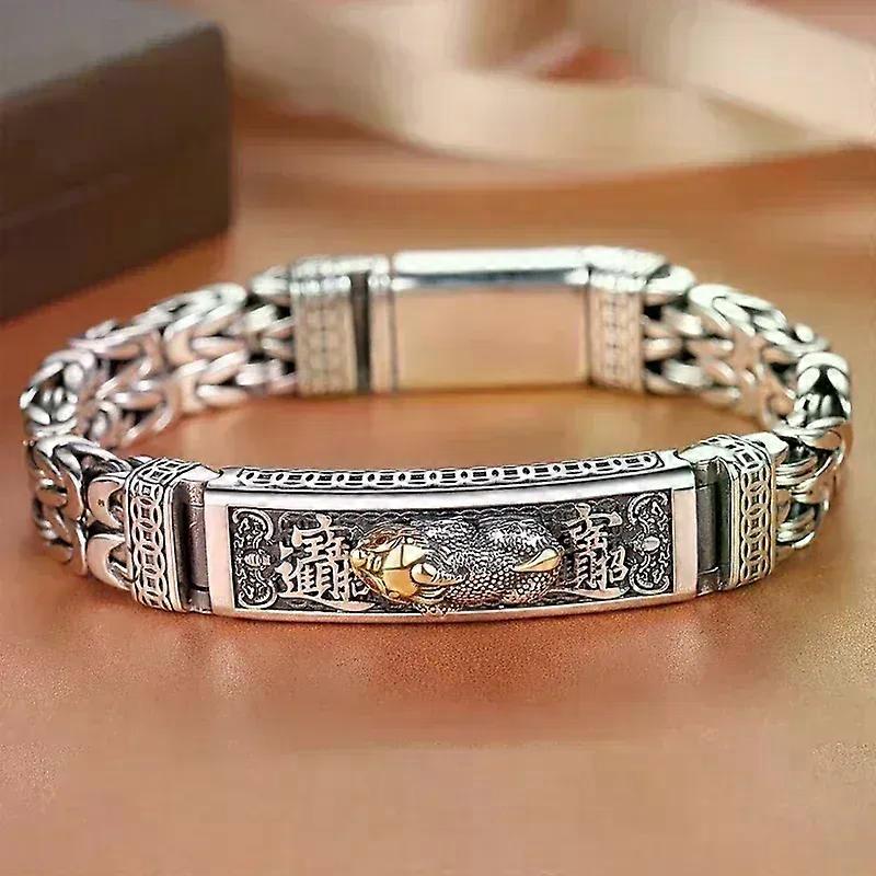 New Silver Color Bracelet Double Chain Peace Tattoo Personality Popular Chinese Style Retro Creative Lucky Coin Fashion Jewelry