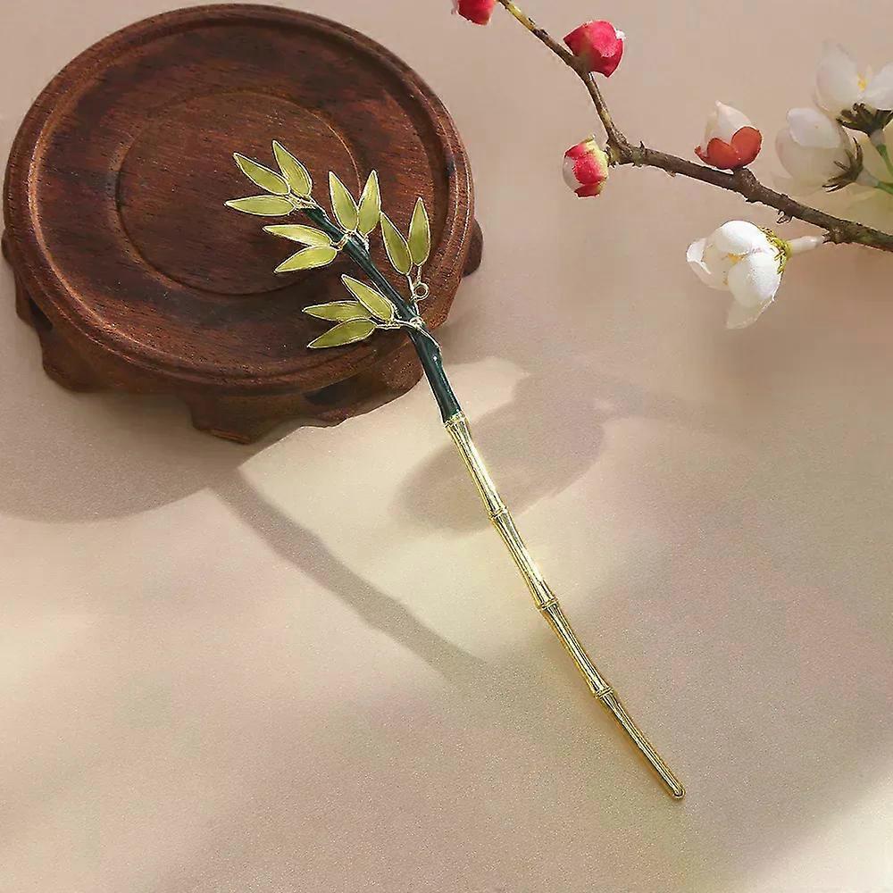Women Fashion Enamel Bamboo Hairpin Metal Green Hair Pin Sticks Clips Hair Jewelry Chinese Hair Claw Bun Maker Accessories