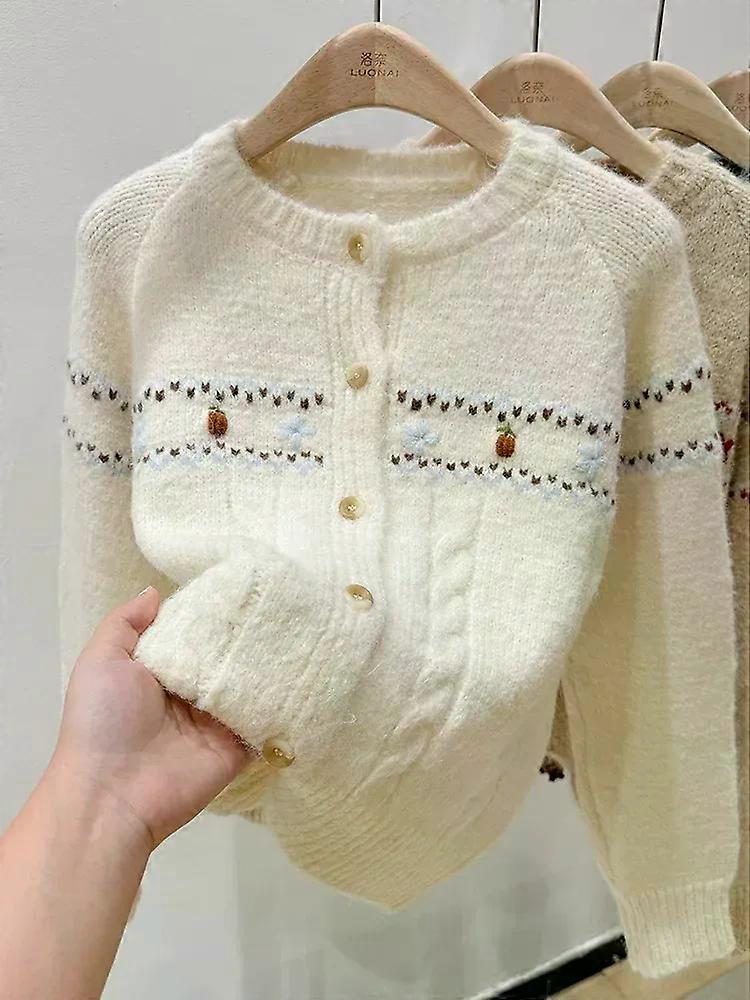 Embroidery Knitted Cardigan Fall Winter Women s O-Neck Single Breasted Long Sleeve Warm Sweater Sweet Casual Female Tops