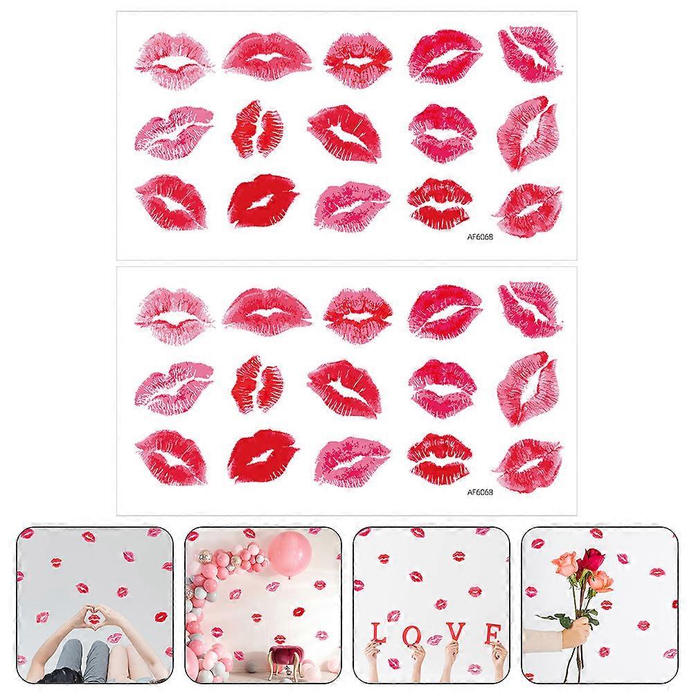 2 Pcs Valentine Red Lips Wall Sticker Decal Home Decor Adhesive Lip Stickers For Glass Surface Party Mall Valentine Wall Art Lip