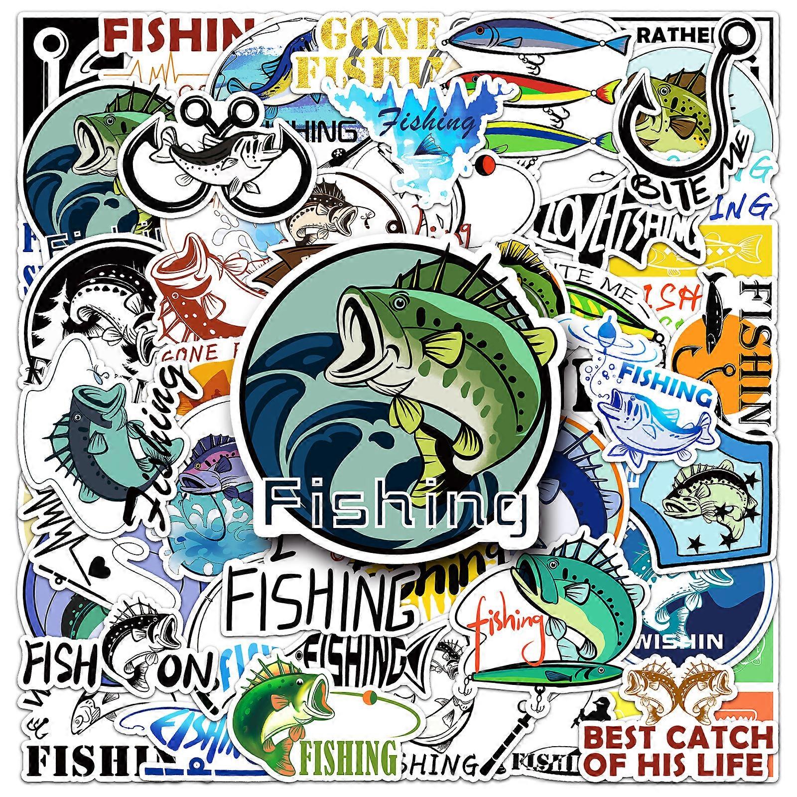 50Pcs Fishing series Cartoon Cute Waterproof Sticker Skateboarding Snowboard Retro Vinyl Sticker