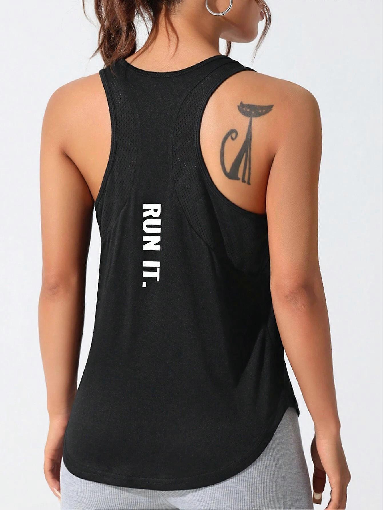 Women's stitched letters quick-drying sports vest, breathable net yoga sportswear, tennis uniform cycling suit, daily wear