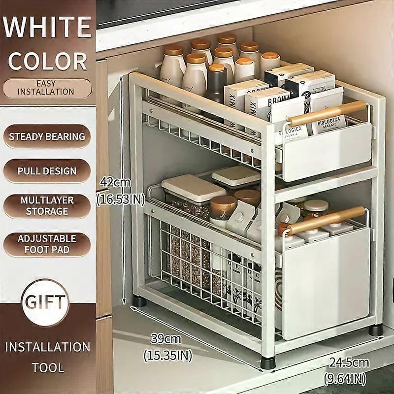 ZEXEF Kitchen Cabinet Pull Out Storage Rack Slide Out Storage Basket Under The Sink Household Items Layered Storage Cabinet