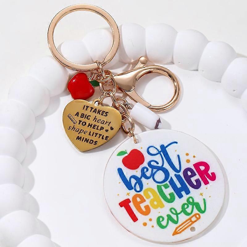 Lovely Apple Acrylic Best Teacher Work Keychain Pencil Heart Ruler Key Ring For Women Men Teacher's Gift Handmade Jewelry Set