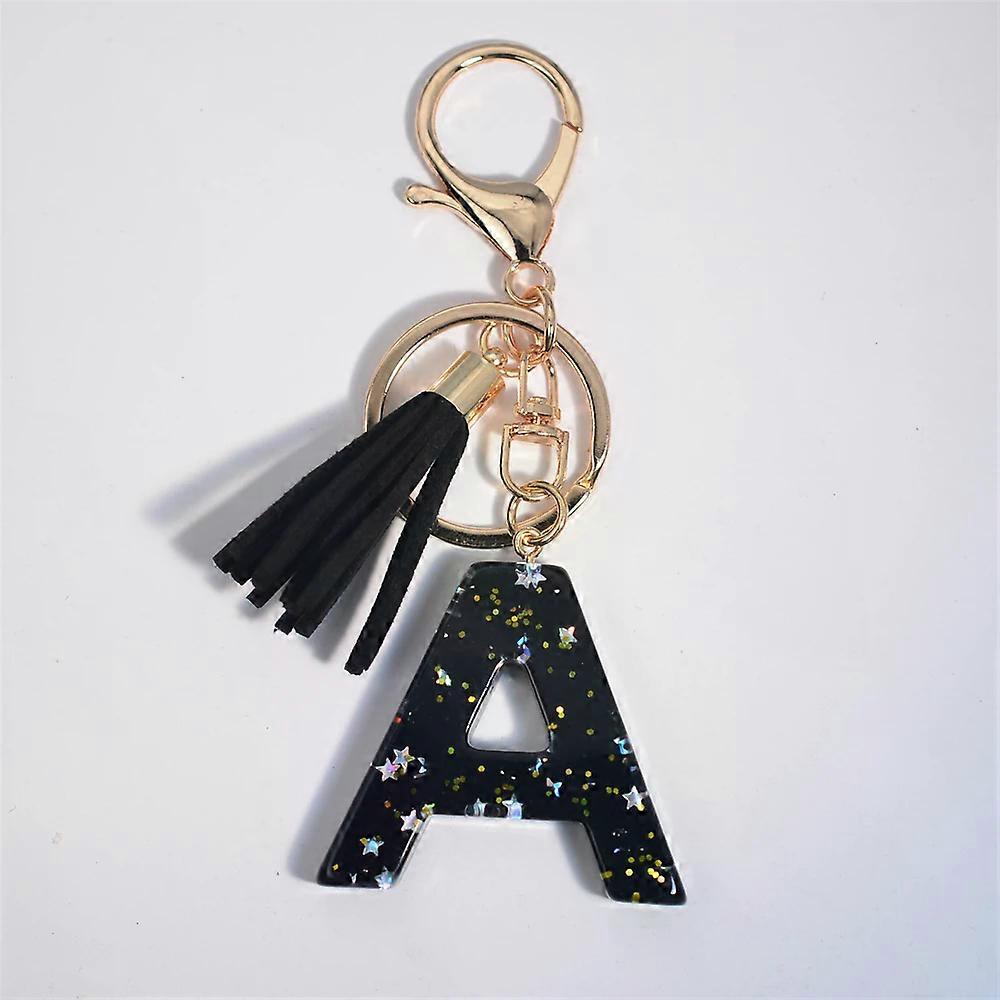 Shiny Star 26 Letter Keychain for Women Men Black Tassels A-Z Initial Pendant Keyring Purse Bag Car Ornament DIY Jewelry Gift