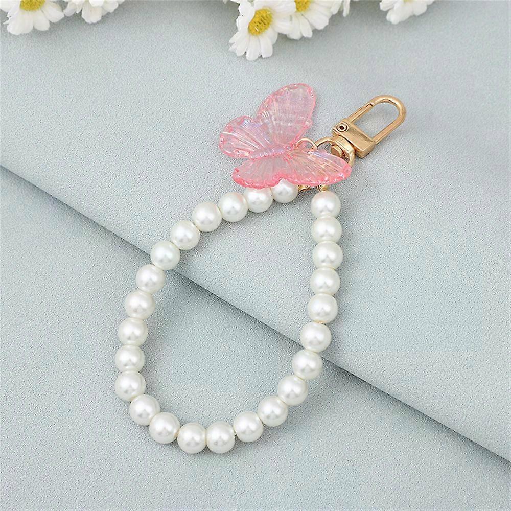 Colorful Butterfly Keychains Cute Acrylic Insects Keyring Beaded Mobile Phone Strap for Women Girls Key Holder Accessories
