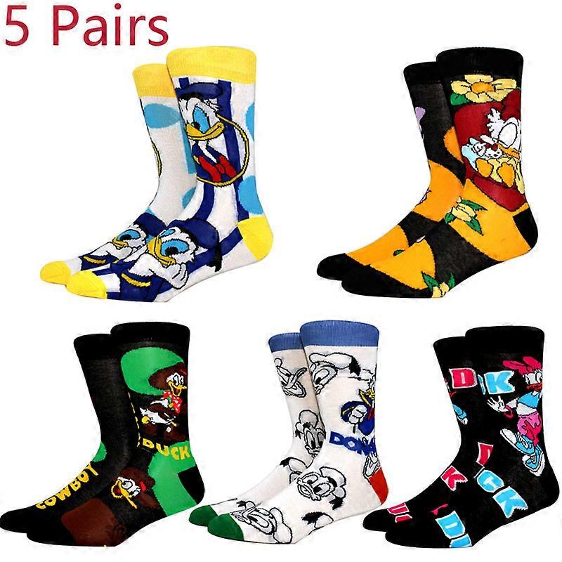 5 Pairs Cartoon Women Socks Kawaii Cute Duck Patterns Colorful Round Neck Novel Men Socks Happy Funny Novelty Socks Size 35-43