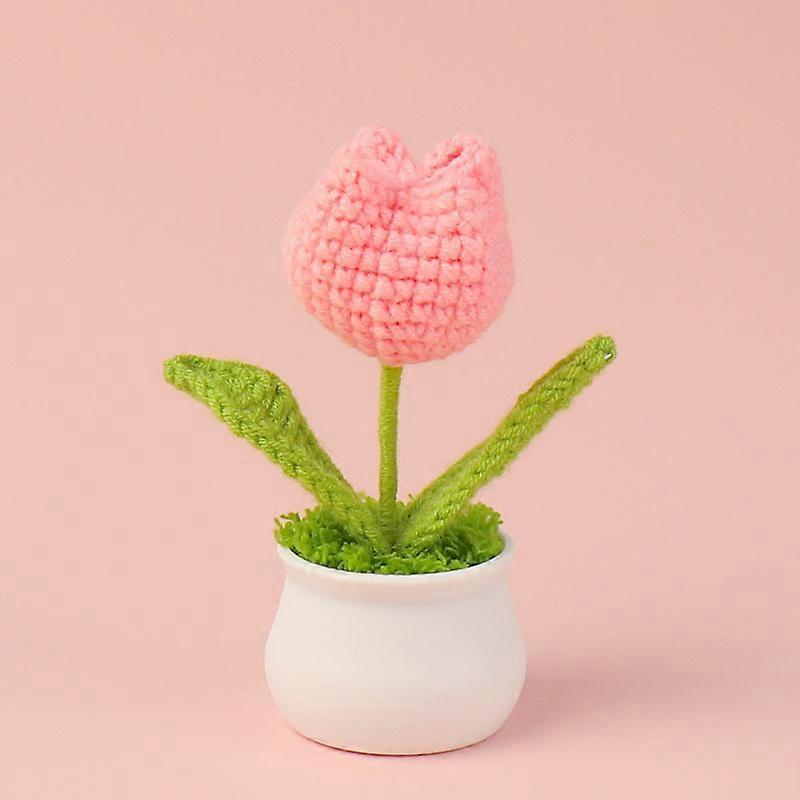 Tulips Crochet Flower Potted Creative Woven Rose Flowers Finished Kintted Plant Tulipanes Tejidos A Crochet Car Desktop Deco
