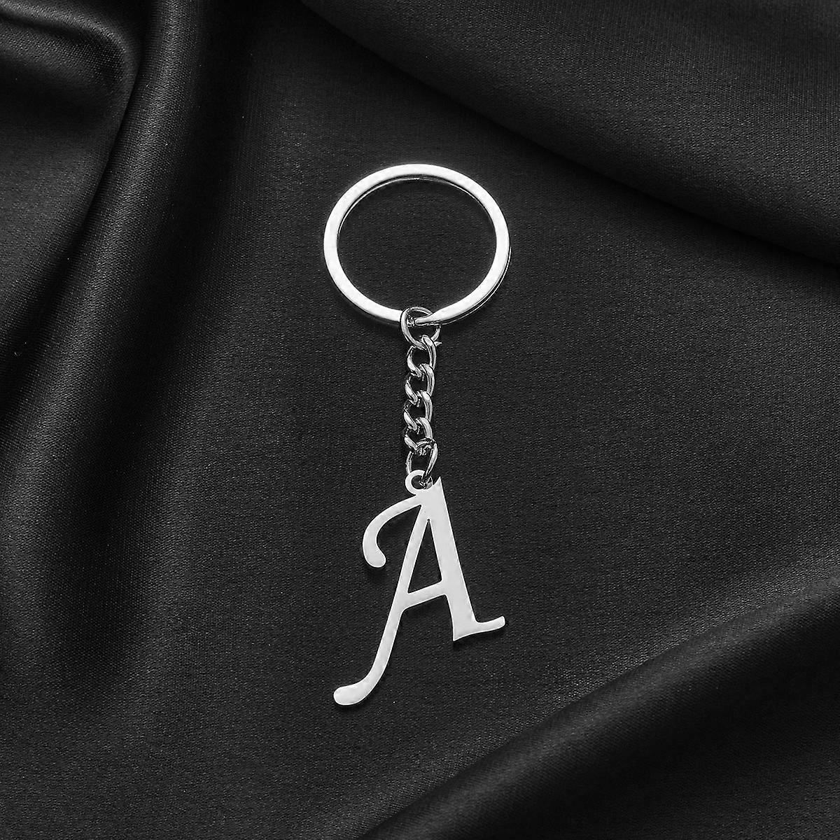 Fashion Metal A-Z Letters Stainless Steel Keychains Silver Color Car Key Ring for Couple 26 Initial Name Jewelry Bag Accessories