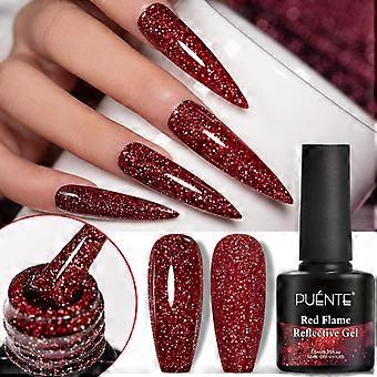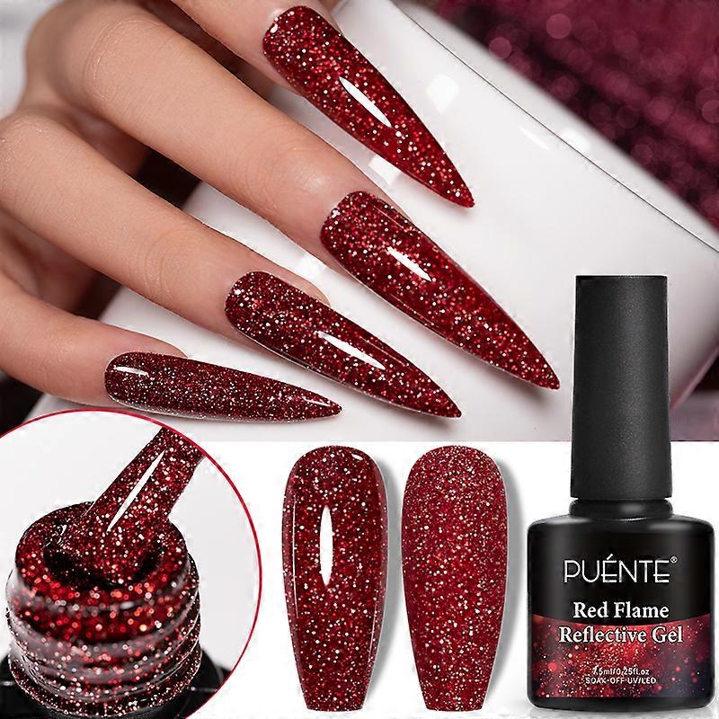 PUENTE 7.5ML Red Flame Reflective Gel Nail Polish Flash Sparkling Red Glitter Nail Gel Soak Off UV Semi-permanent Nail Varnish