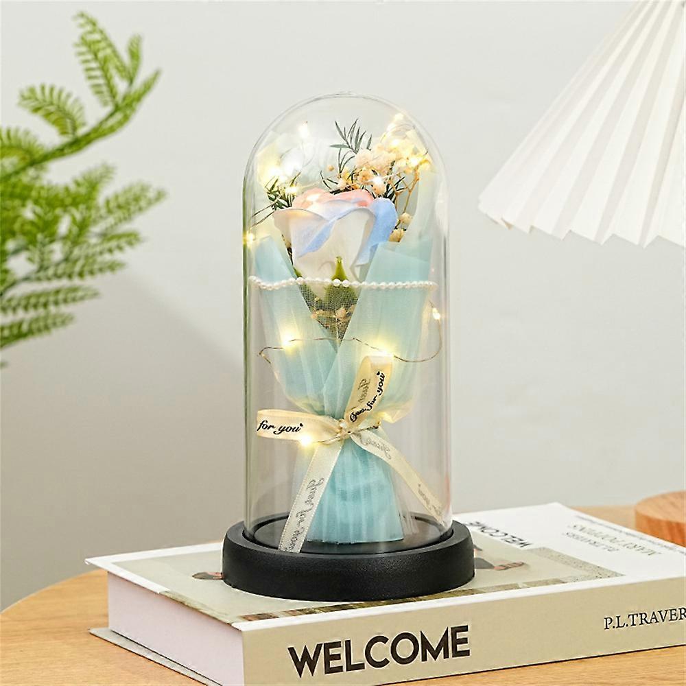Wedding Birthday Valentine's Day Gift Eternal Rose Flower Colorful Luminocom Ornament For Women Mom Girlfriend Wife Home Decor