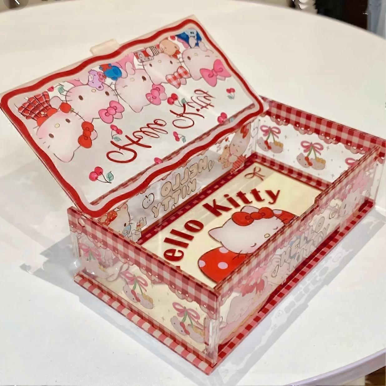 Hot Sanrio Acrylic Storage Box Hellokitty Kawaii Cartoon Jewelry Box Earrings Necklace Hand Jewelry Storage Box Desktop Ornament