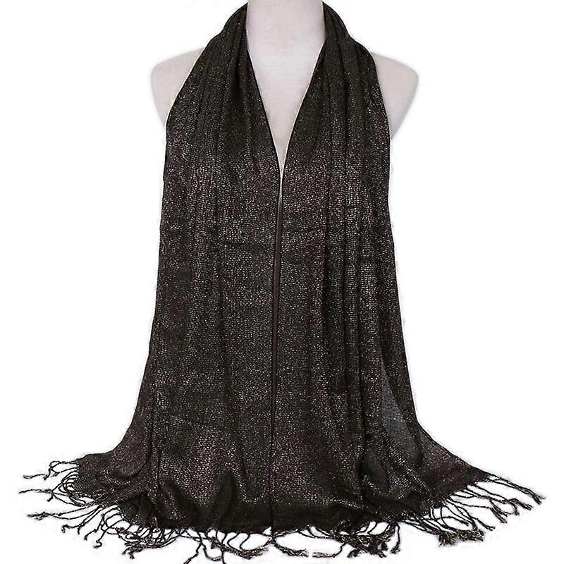 Women Shimmer Glitter Scarf Hijab Solid Color Shawl Wrap Muslim Headband Muffler