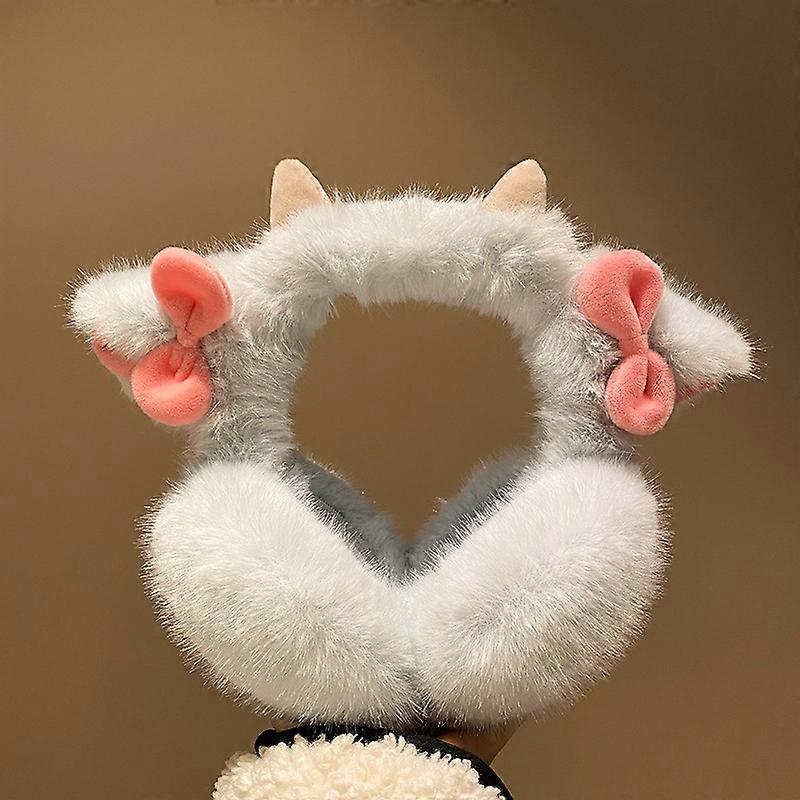 Cache-oreilles en forme de petites cornes d'agneau pour femme, couvre-oreilles romantique avec n?ud papillon rose, coupe-vent, chaud et doux
