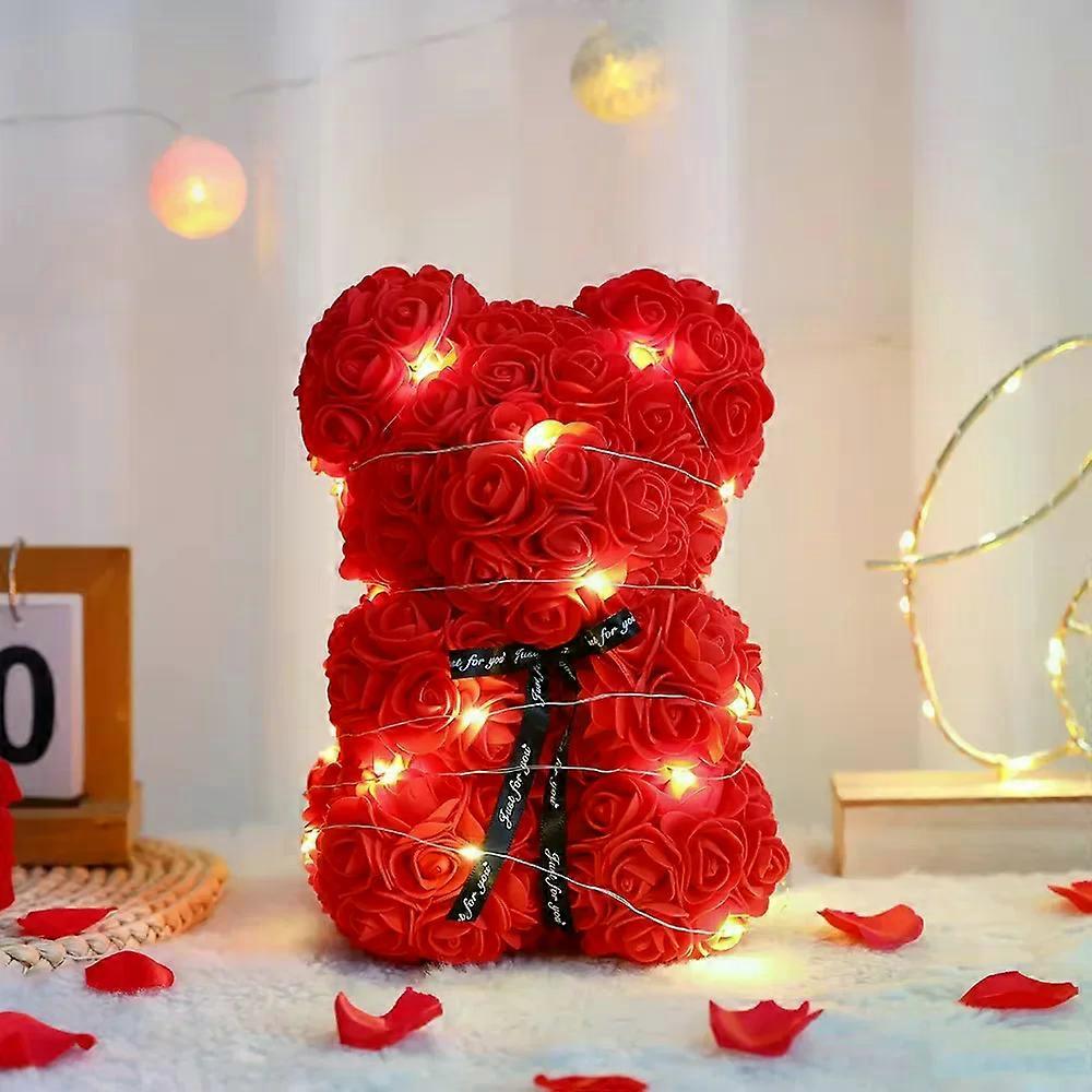 25cm Artificial Teddy Rose Flower Bear with Box Romantic Valentines Day Gift Girlfriend Anniversary Wedding Party Supplies