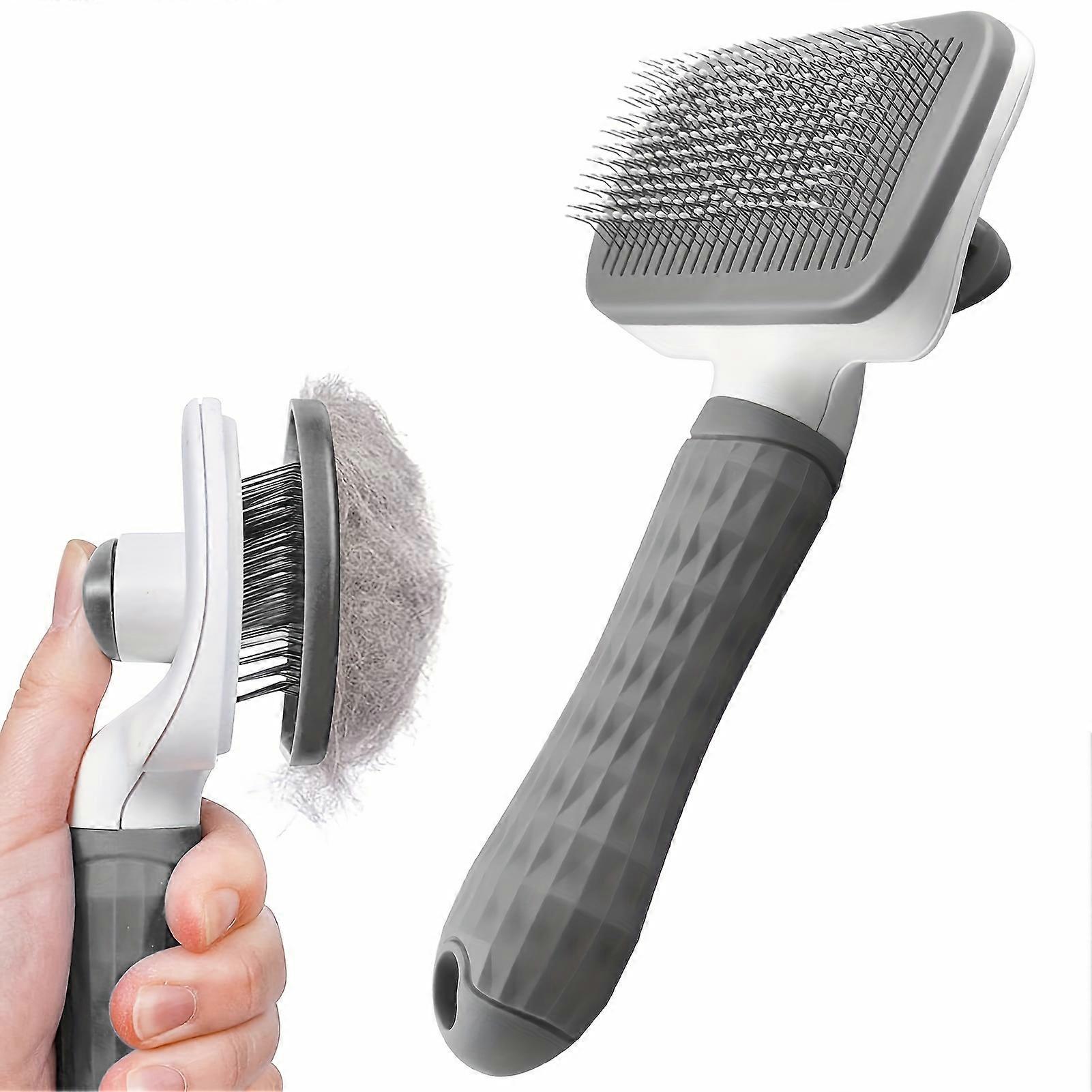 1pc Easy-Clean Pet Grooming Brush Gentle Deshedding Massage Comb with One-Click Hair Removal Dog Grooming for Dogs & Cats