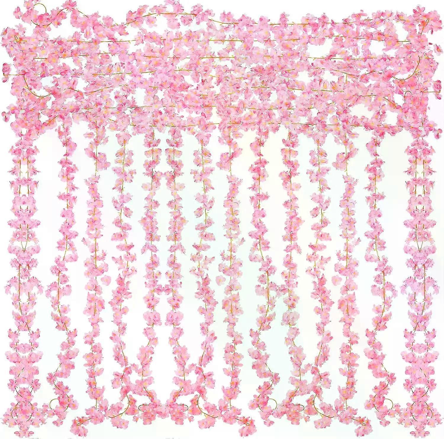 Artificial Pink Sakura Flower Garland Cherry Blossoms Vines Wedding Arch Decor Fake Floral Home Party Backdrop Decoration Gift