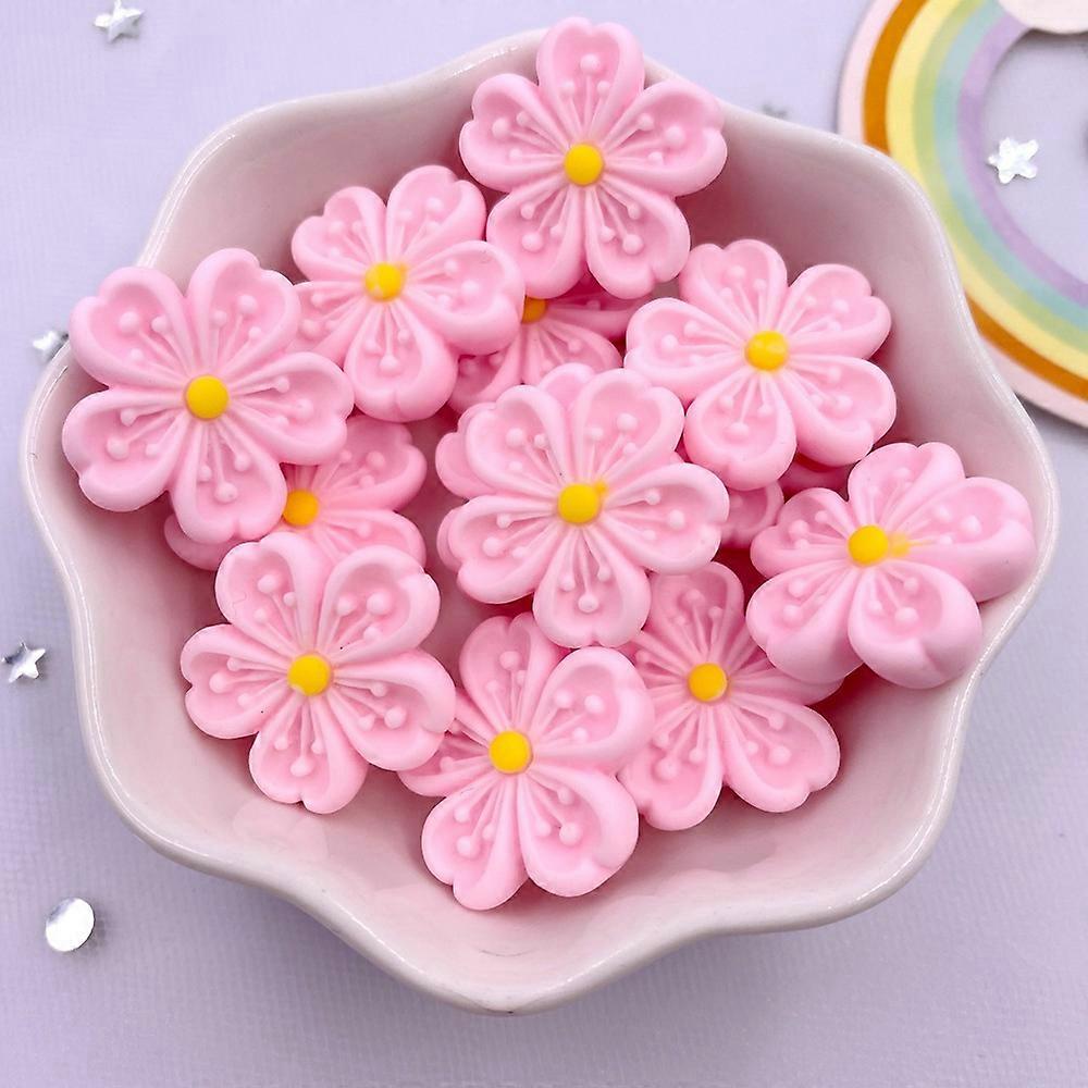Resin Kawaii 3D Colorful Painted Cherry Blossoms Flatback Stone Scrapbook Figurines 10PCS DIY Bow Decor Accessories Crafts OM40