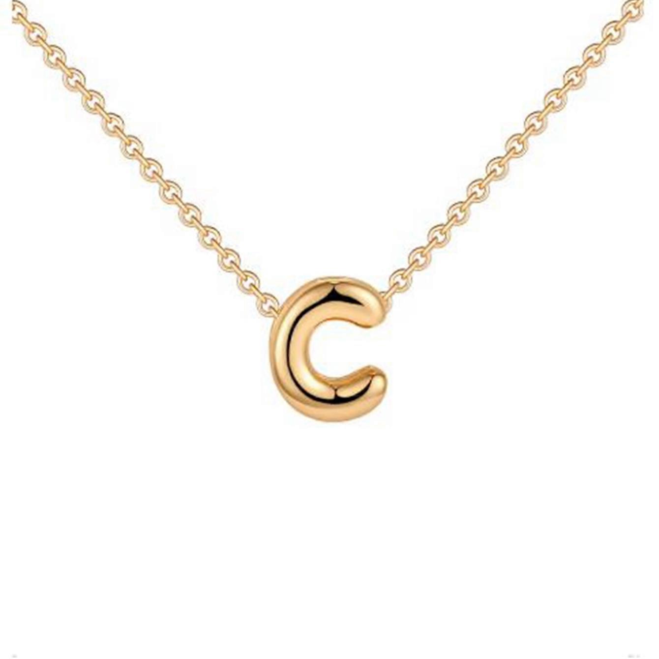Cute English Letter Initial Necklace 18K Gold Plated Necklace Puffy Bubble Letter Necklace for Women