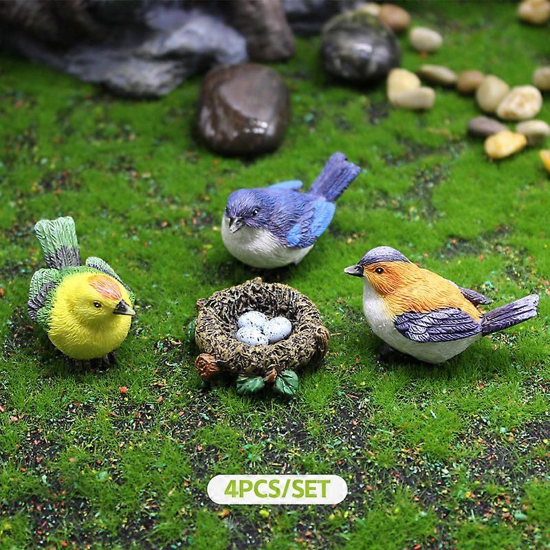 4PCS Mini Bird Figure Model Cartoon Resin Crafts DIY Succulent Plant Bonsai Figurines Fairy Garden Dollhocome Miniatures Decor