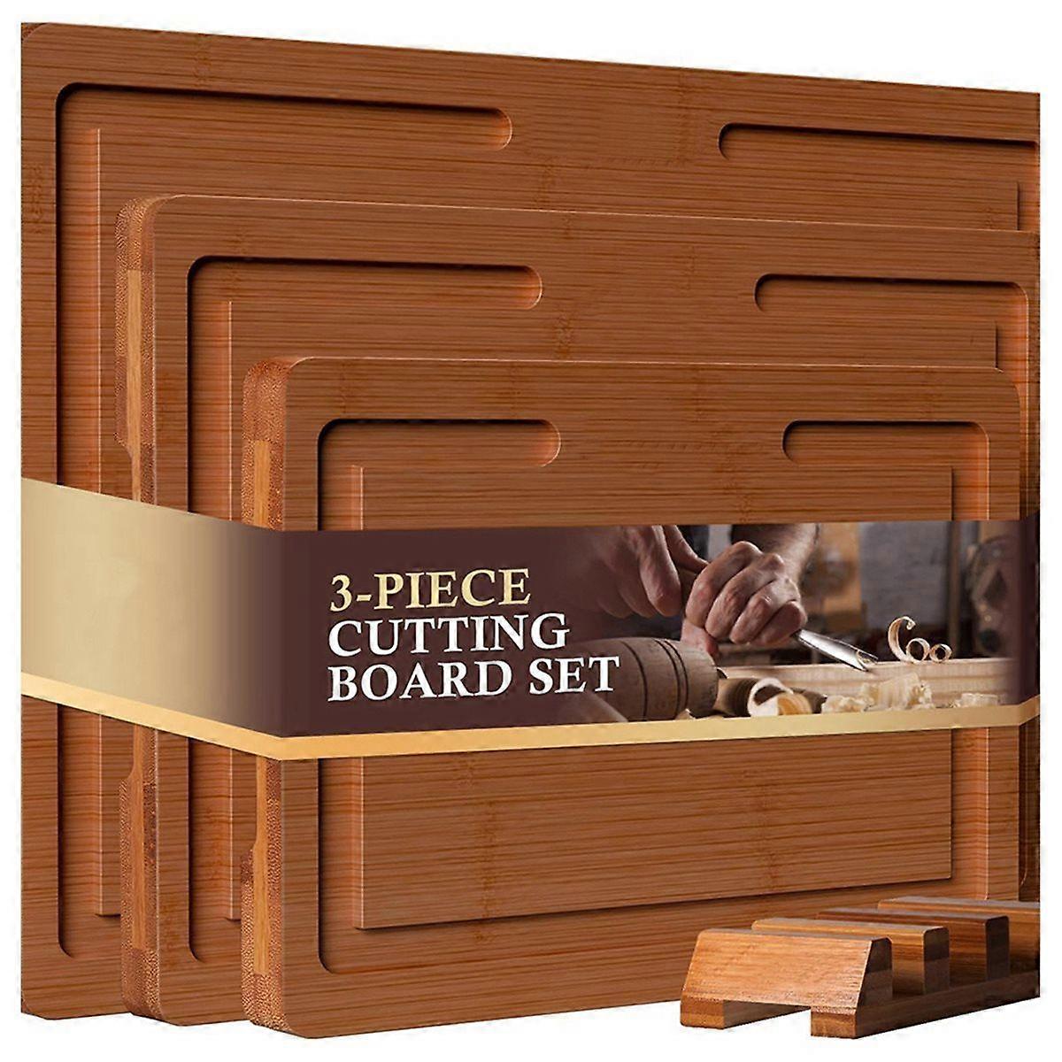 Bamboo Cutting Board Set, Wood Cutting Boards for Kitchen with Holder Wooden Chopping Board for Mea