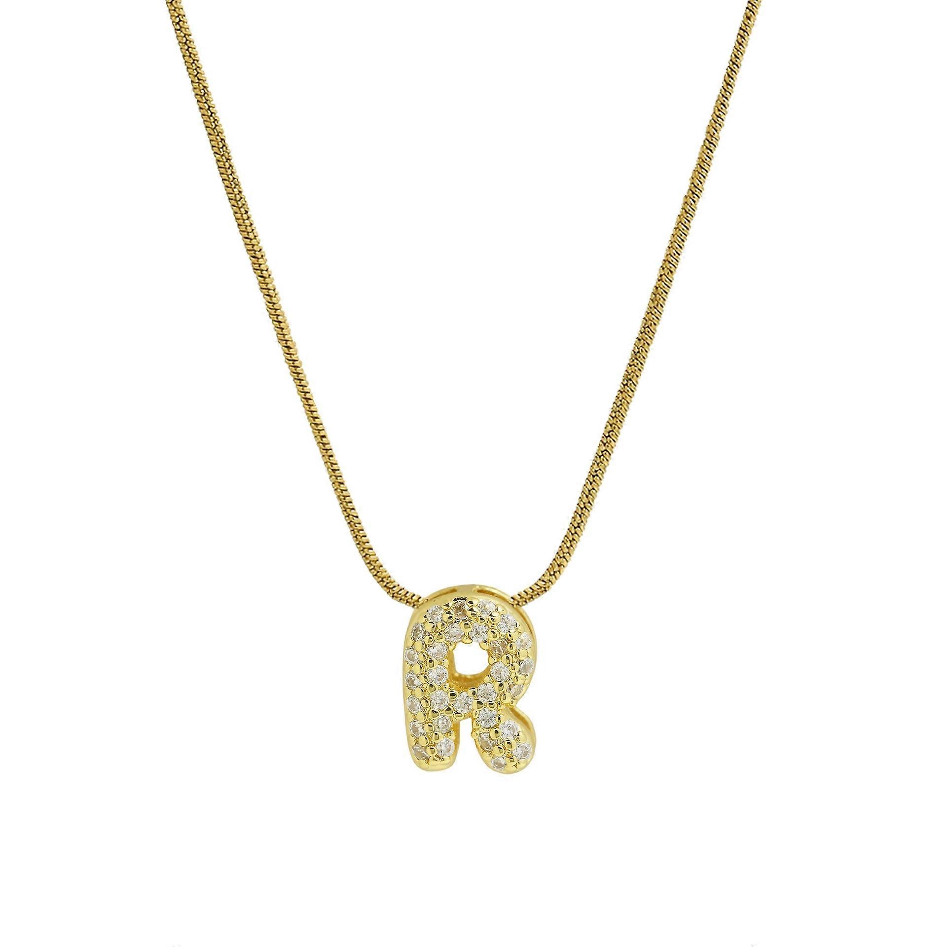 Cute English Letter Initial Necklace 18K Gold Plated Zircon Paved Necklace Puffy Bubble Letter Necklace for Women