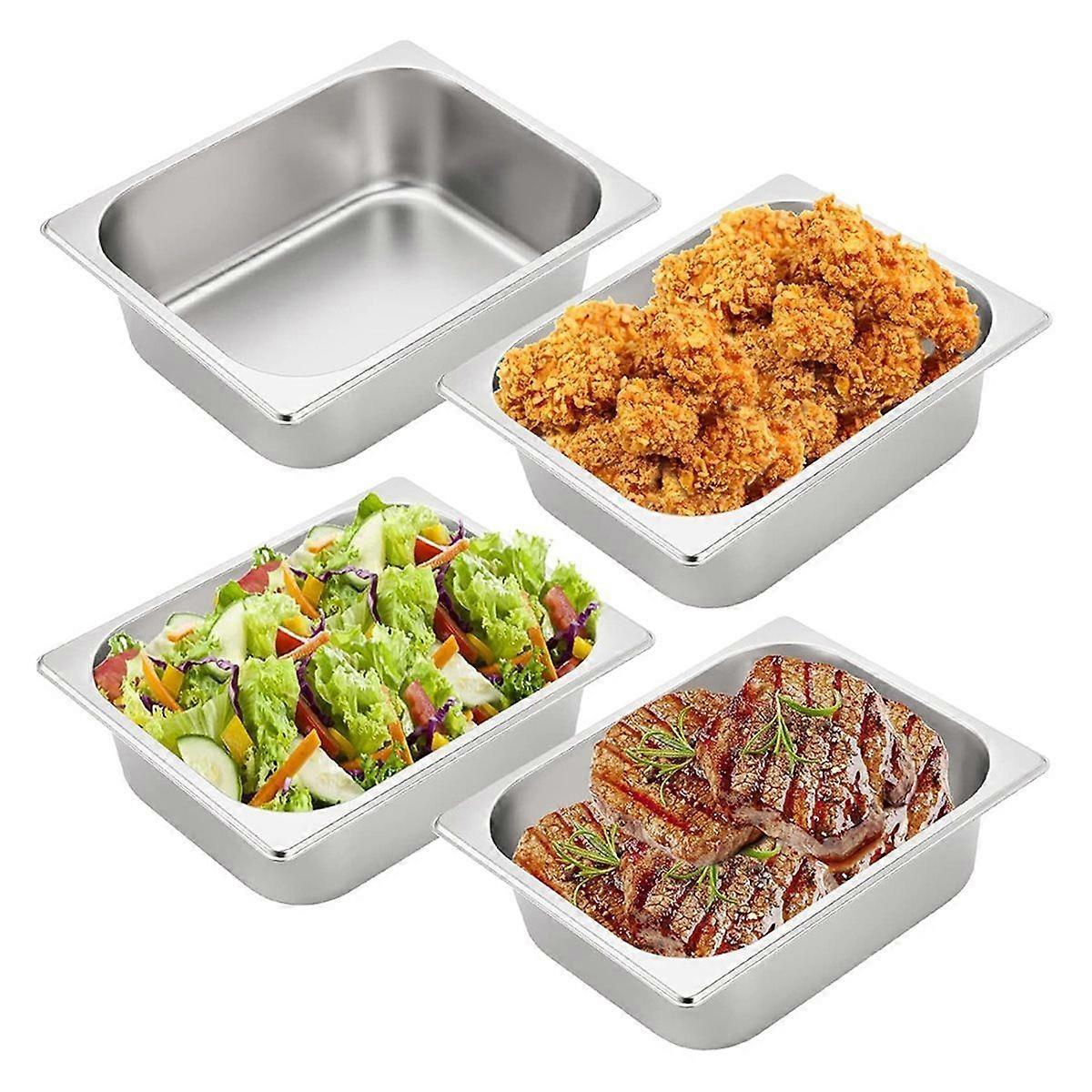 4 Pack Pans Deep Steam Table Pan, Stainless Steel Food Pan, Breading Trays for Hotel, Party, Buffet