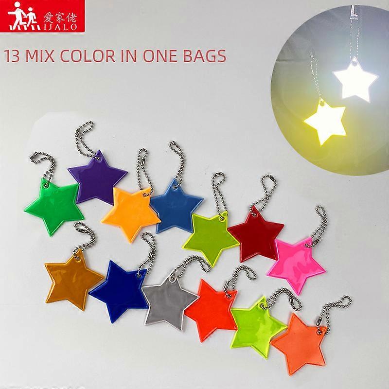 13Pcs Mix Color Little Star Heart Charm Bag Jewelry Accessories Reflective Keychain Hanger Keyrings For Kids Women Safety come
