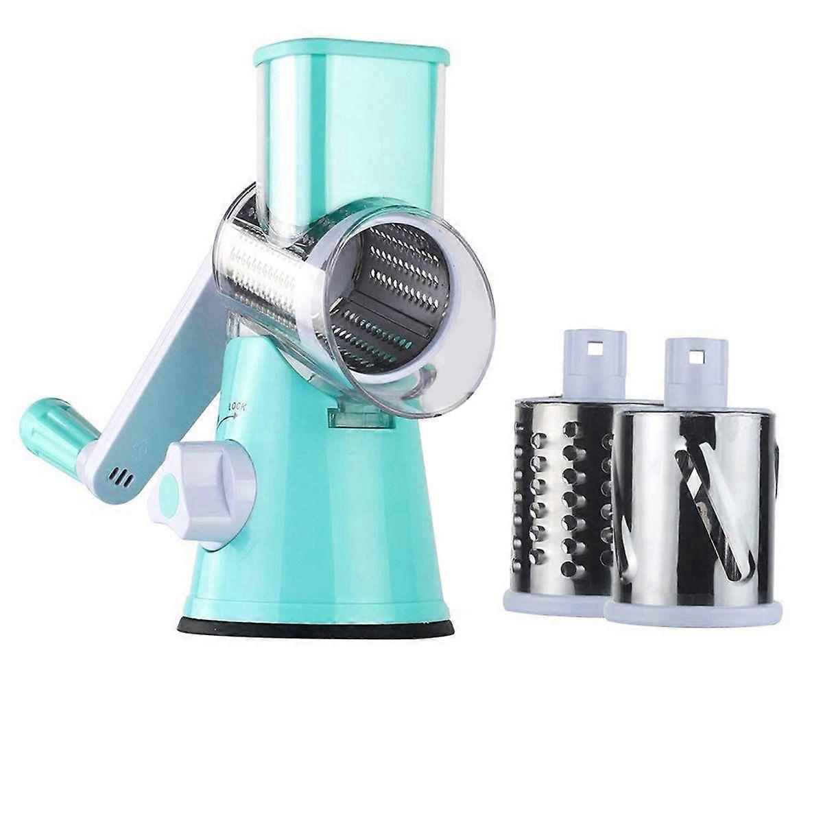 Rotary Cheese Grater Shredder, Speed Kitchen Manual Round Mandolin Slicer Grinder with 2 Drum Blade