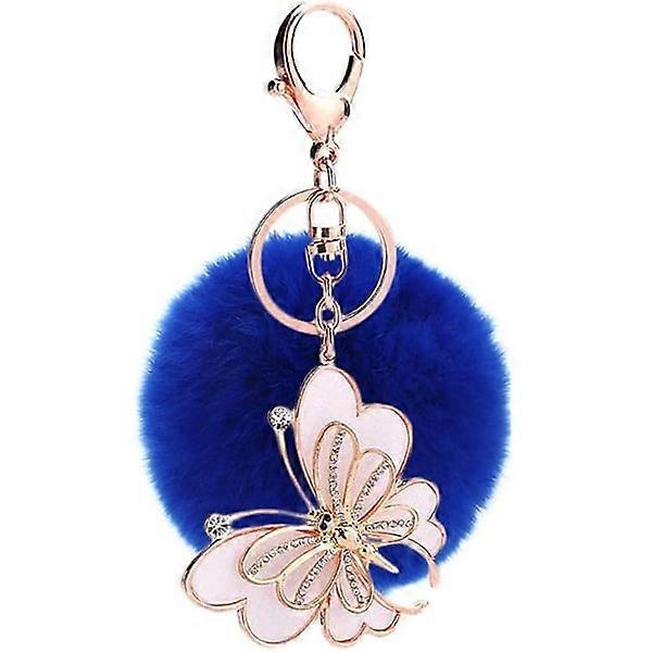 Keychain with ball and plush for car keys or handbag. Royal Blue