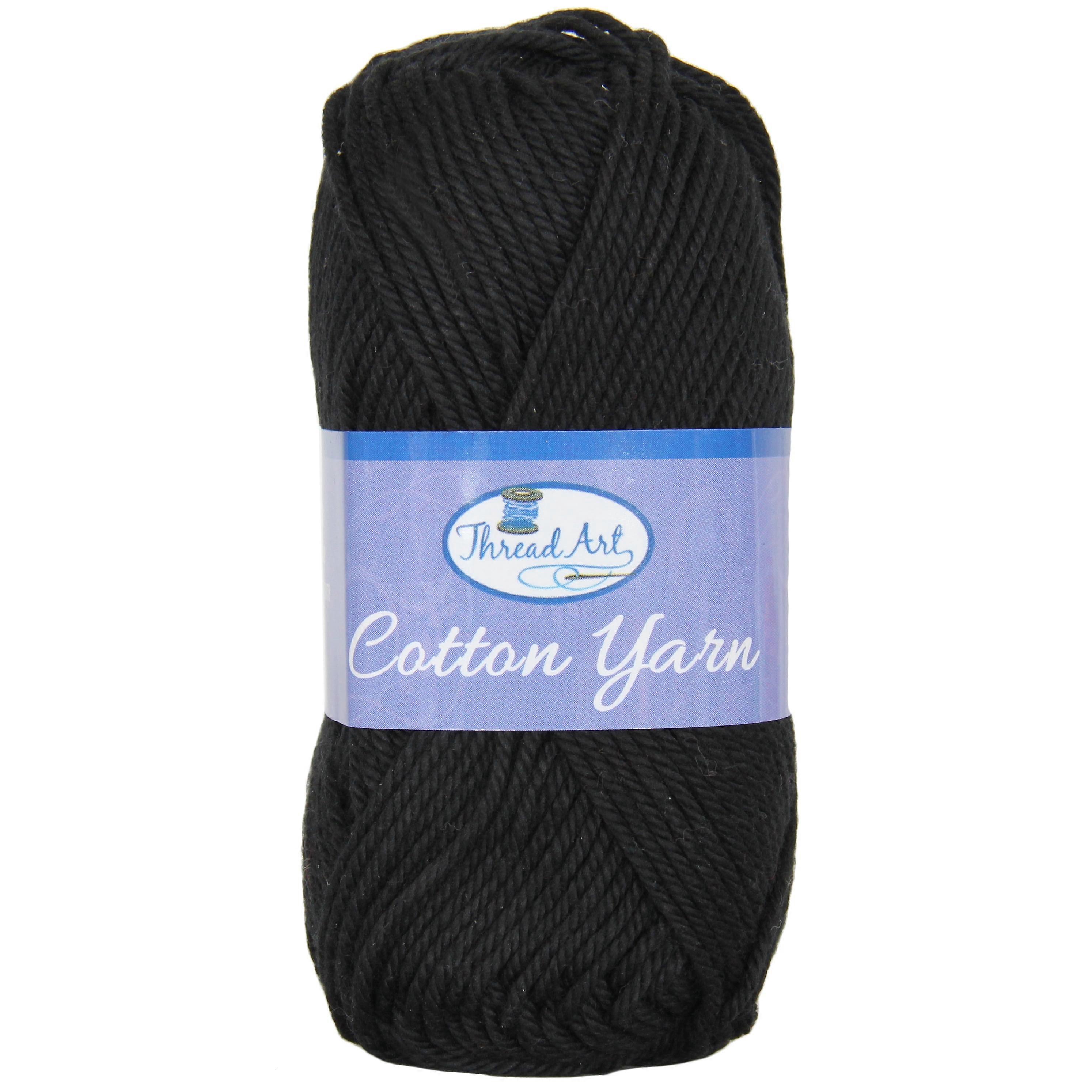 100% Pure Cotton Crochet Yarn by Threadart | Black | 50 gram Skeins | Worsted Medium #4 Yarn | 85 yds per Skein - 30 Colors Available