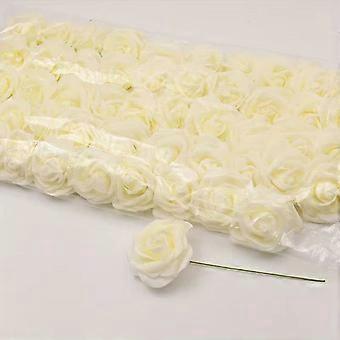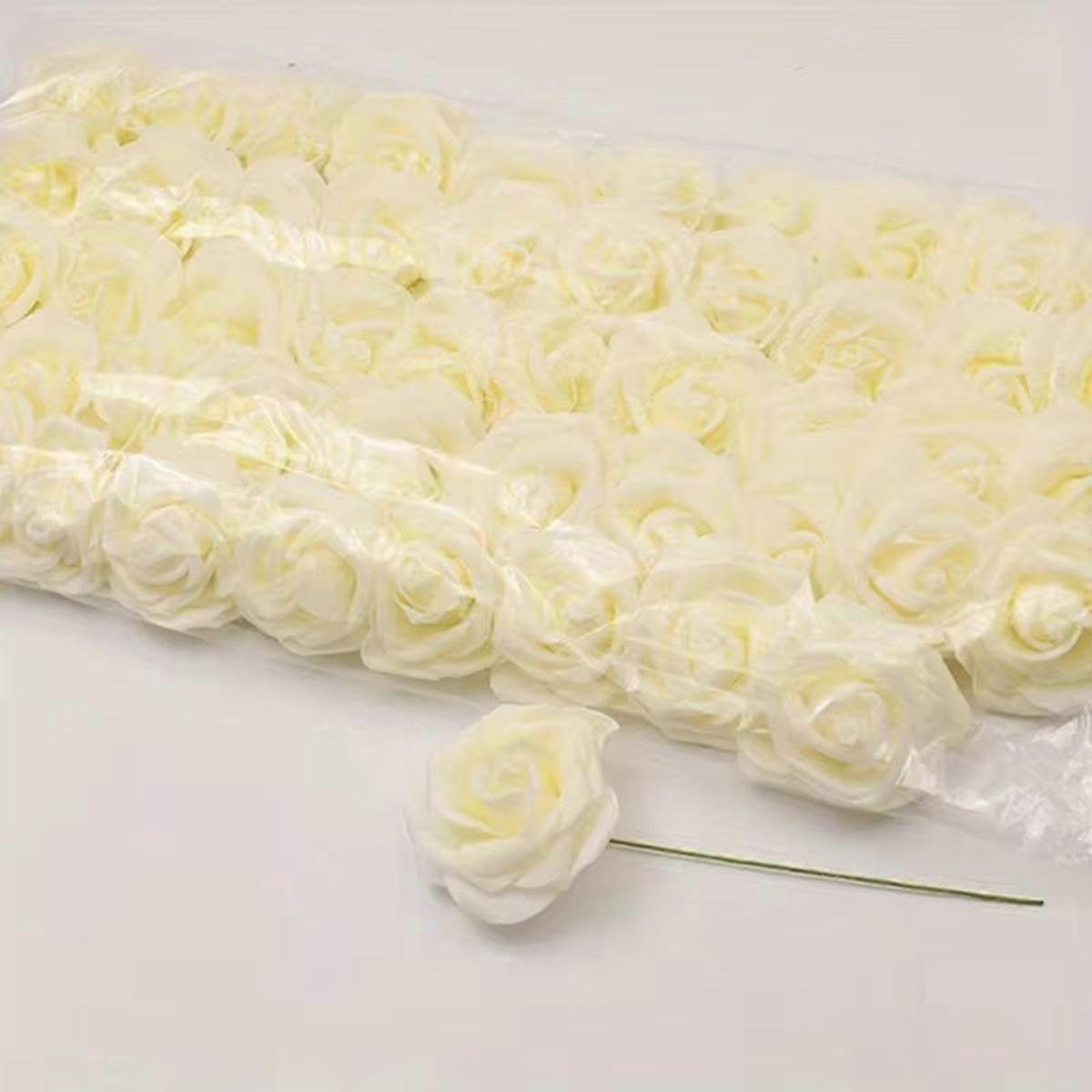 50pcs/package White PE Rose Artificial Flower Head With Stem DIY Bouquet Wedding Party Decoration Scrapbook Supplies