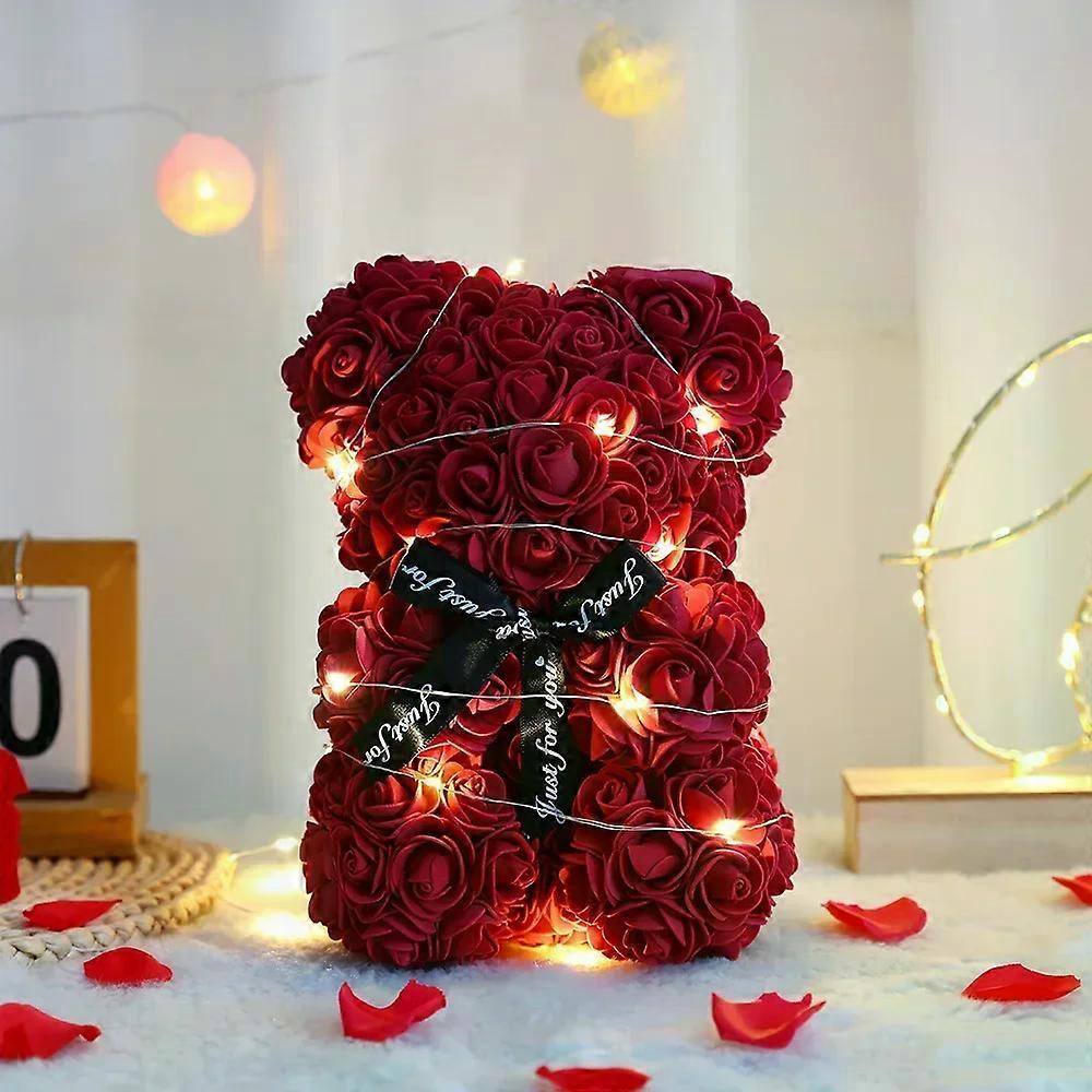 25cm Artificial Teddy Rose Flower Bear with Box Romantic Valentines Day Gift Girlfriend Women Anniversary Wedding Party Supply