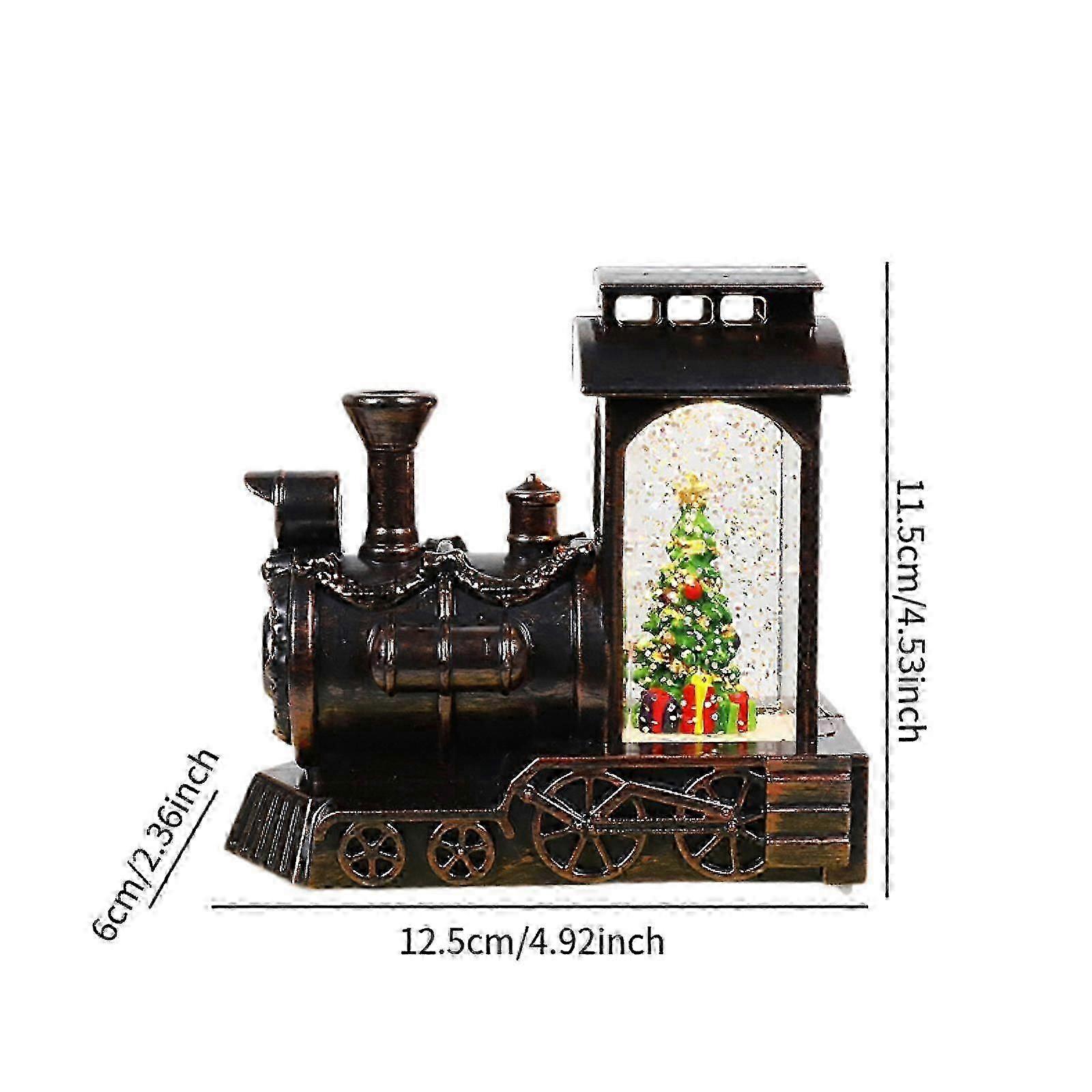 Unique Design: Featuring an antique bronze train and Christmas figure inside the water filled crystal ball, this this Christmas tree snowflake globe decoration brings a unique and creative touch to your Christmas decorHome Decor: The Christmas crystal ball miniature train Ornament is not only a holiday decoration but also an fine ornament that can be placed on desktops, bookshelves or cabinets to add a touch of holiday color to your homeCrystal Clear Dreamy Scene: This Christmas snow globe ball features a fairy tale world within its transparent glass sphere. With snowflakes fluttering and lifelike characters, it creates dreamy and beautiful holiday atmosphereDurability: This festive snow globe lights is made of sturdy pp and electronic components to ensure long term and sturdy performanceProduct Specifications: Each package includes a Christmas tree snowflake globe, ideal gift for friends and family during the holiday season Specification: Material: Pp Size Chart: 12.5 cmx6 cmx11.5 cm/4.92 inchx2.36 inchx4.53 inch Package Includes: 1 Christmas Snow Globe Note: Please allow slightly errors 1-2cm differences due to manual measurement.