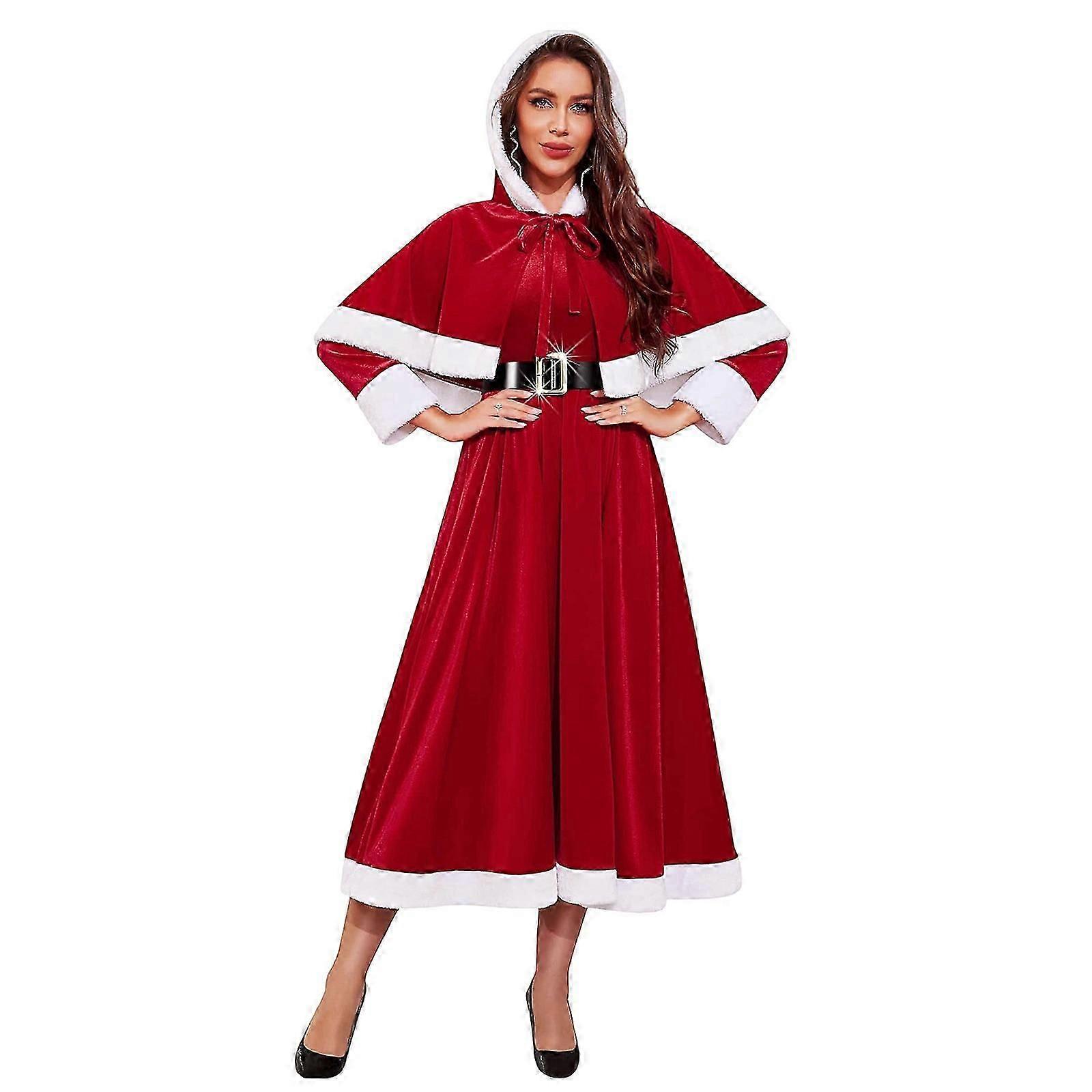 Christmas Dresses For Women Santa Costume With Removable Hooded Cloak and Belt Holiday Party Outfit Red XXXL New Arrival
