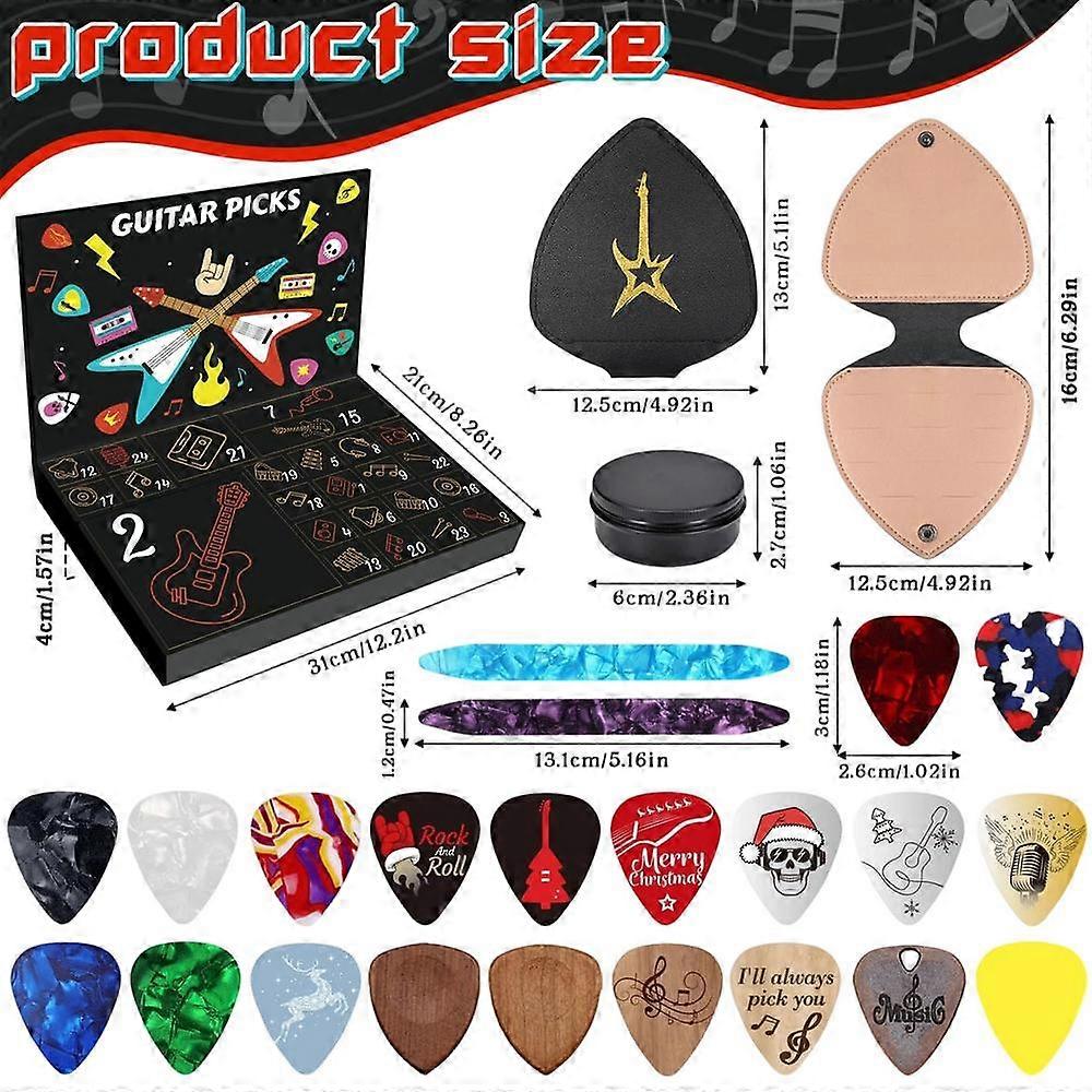 Christmas Countdown Calendar Wooden Tool 24-Day Thin Guitar Picks For Teens Adults Kids Ukulele Players Seasonal Holiday Easter