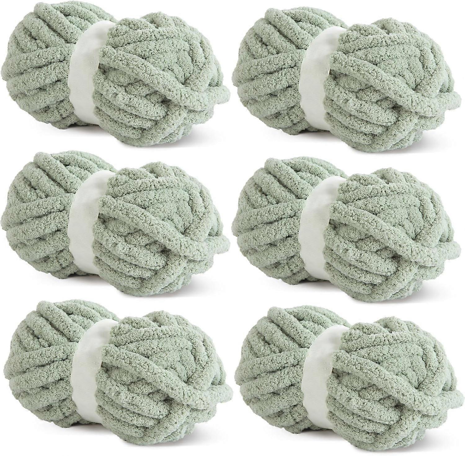 Sage Green Chunky Chenille Yarn for Crocheting, Bulky Thick Fluffy Yarn for Knitting, Super Bulky Yarn for Blankets, Soft Plush, 2/6 Jumbo Pack