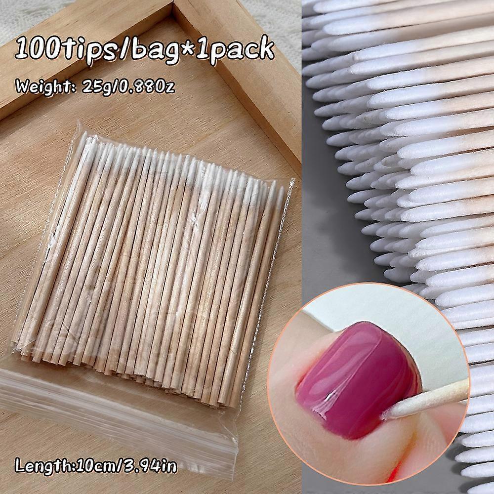 100Pcs Nails Art Wood Cotton Swab Clean Sticks Buds Tip cuticle pcomher Head Manicure Detail Corrector Nail Polish Remover Tools