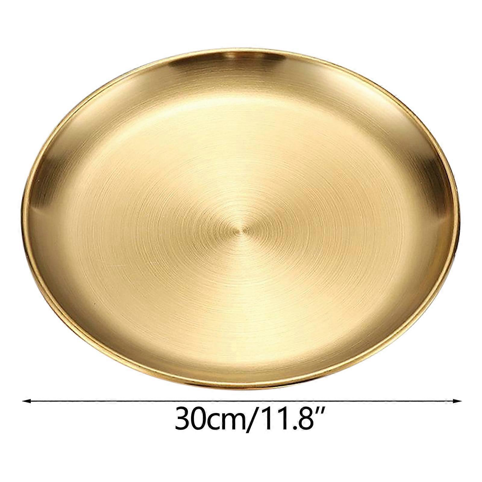 Moocorvic Round Dinner Plates, Stainless Steel Thickened Barbecue Plates, Shatterproof & Dishwasher Safe(Gold)