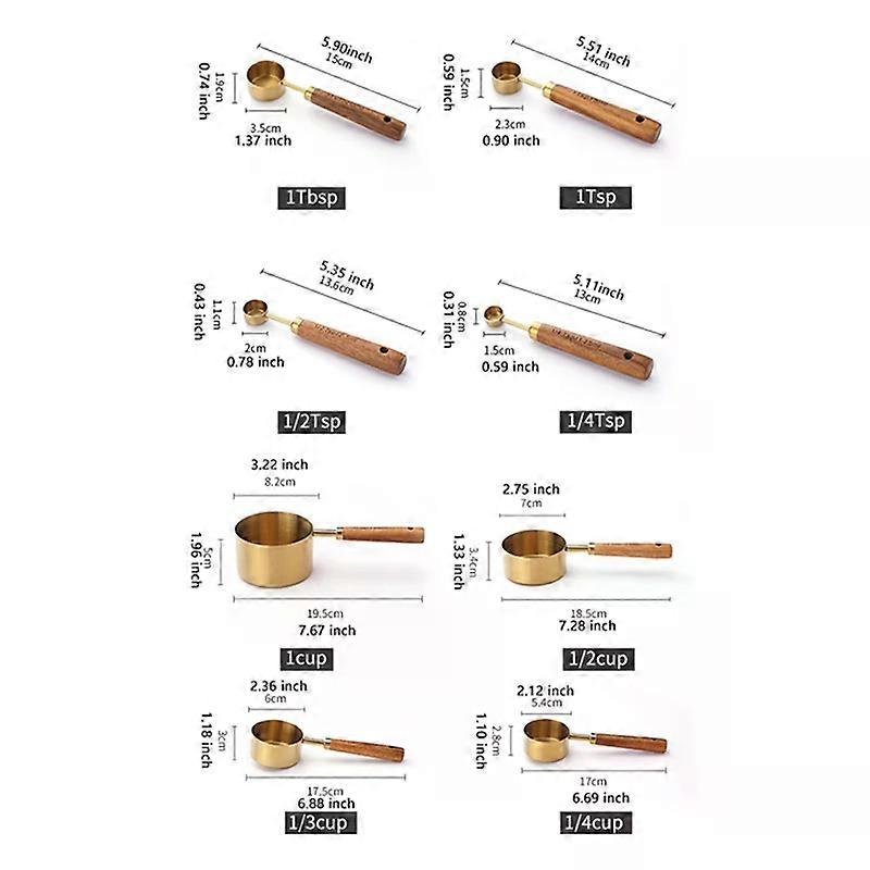 Golden Wooden Handle Measuring Spoon Stainless Steel Coffee Bean Powder Cup Tea Roasting and Seasoning Tools Kitchen Accessories