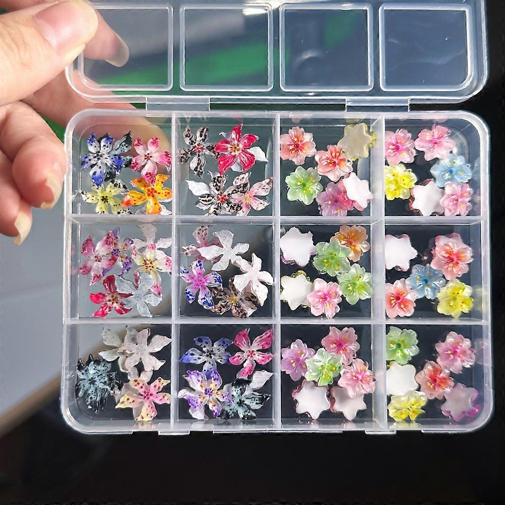 72Pcs 3D Crystal Jelly Soft Spotted Flower Nail Charms Transparent Leopard Lily Hibisccom Hawaiian Floral Nail Decor Nail Supplie