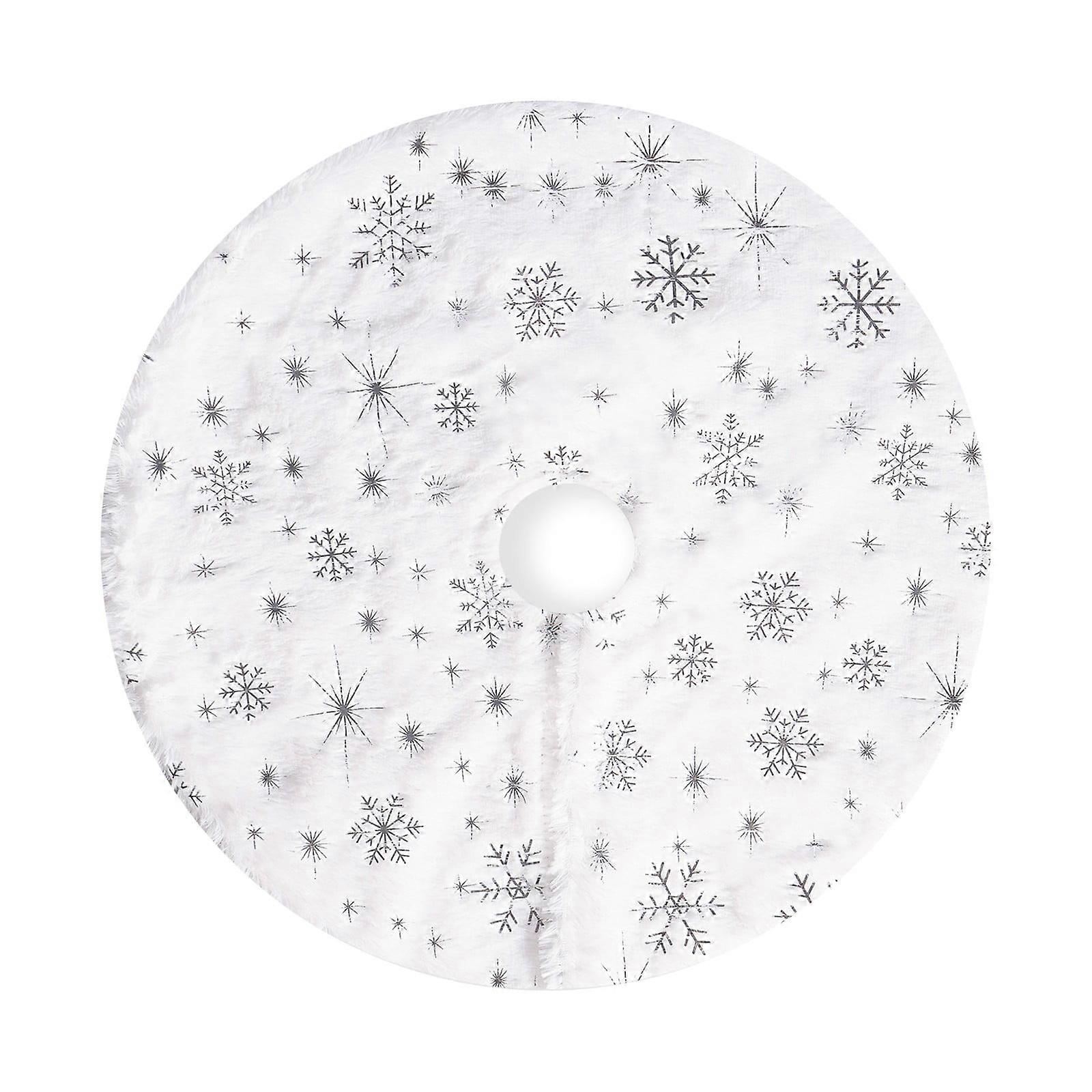 15" Small White Felt Christmas Tree Skirt, Snowflakes Pattern Round Xmas Tree Skirt for Holiday Party Decoration